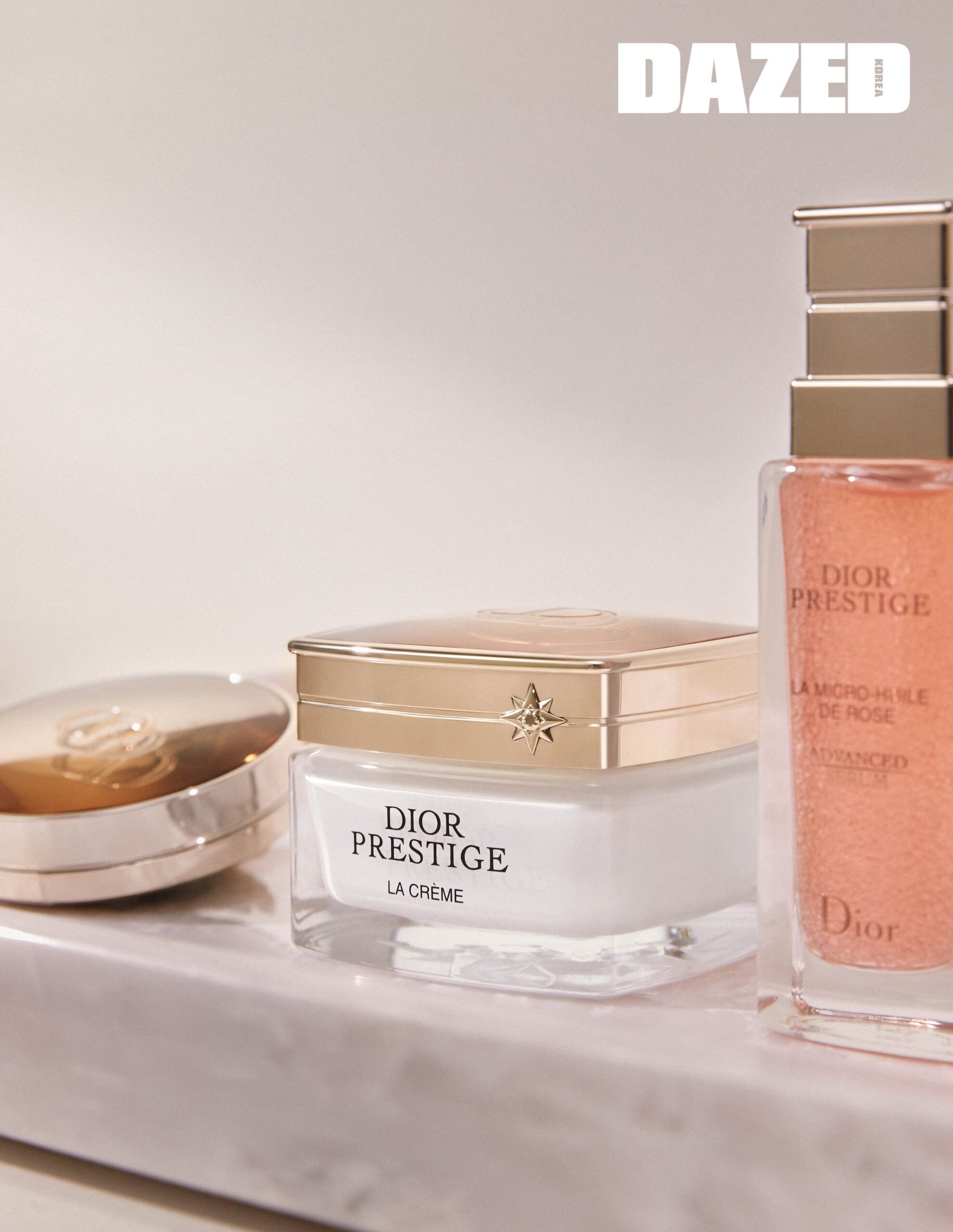 (아래) 젊음을 되찾은 듯 얼굴 가득 장밋빛 생기를 부여하는 디올 사이언스의 특별한 로사펩타이드 추출물이 피부 장벽은 물론 피부 표면과 속까지 3단계에 걸쳐 케어하는 디올 프레스티지 라 크렘므 인텐시브 리페어링 크림 50ml 55만원대, 크리스챤 디올 뷰티(Parfums Christian Dior).