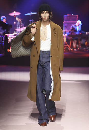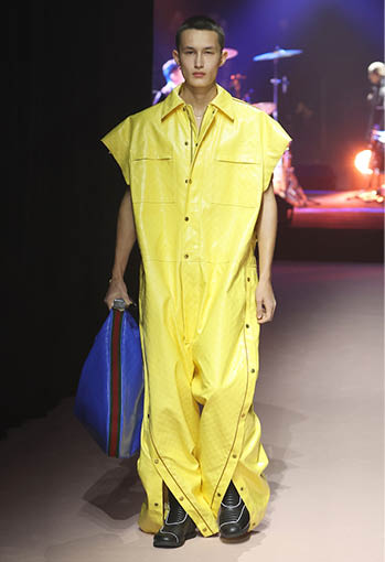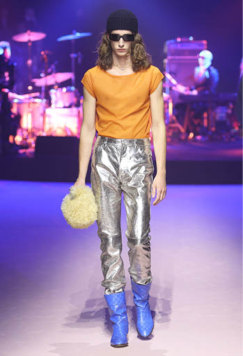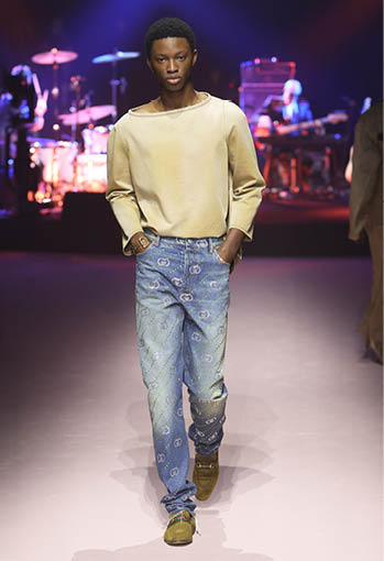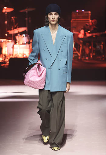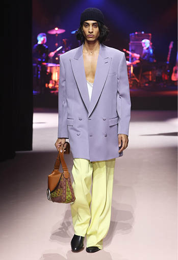 1980년대와 2000년대 구찌 아카이브에서 영감을 받아 선보인 스포츠 웨어와 모터사이클 룩. 색이 바랜 데님 트라우저에는 1953년 오리지널 로고가 사용되었으며 기존과 다른 구조로 디자인된 이브닝 트라우저는 마치 조각품처럼 바닥까지 길게 드리워졌다. 깃털 장식으로 덮인 듯한 카반 코트는 빛나는 시퀸 디테일로 장식되었으며 테일러드 슈트는 슬리브리스 재킷이나 쇼츠로 입을 수 있도록 탈부착 디자인이 적용됐다. 한편 크리스털 GG 패턴은 1970년대 코팅된 모노그램 캔버스를 가공해 새롭게 해석됐다. 강렬한 컬러와 빛바랜 파스텔 톤이 적용된 크리스털 GG 패턴은 워크웨어 커버올즈와 오버사이즈 가방 및 슈즈에 적용돼 레트로한 감성을 더했다.