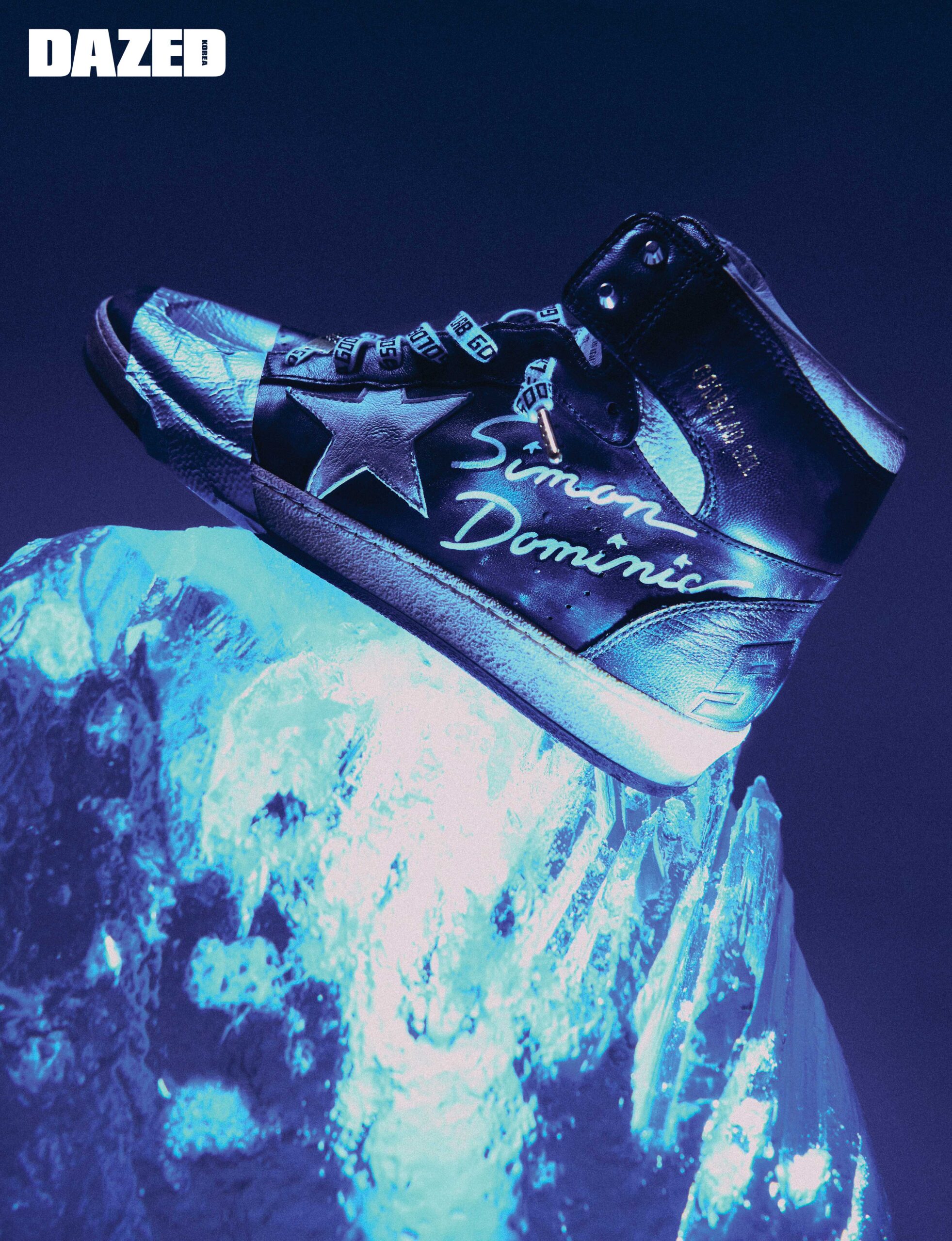 사이먼 도미닉을 위해 제작된 코크리에이션 스카이-스타 스니커즈는 골든구스(Golden Goose).