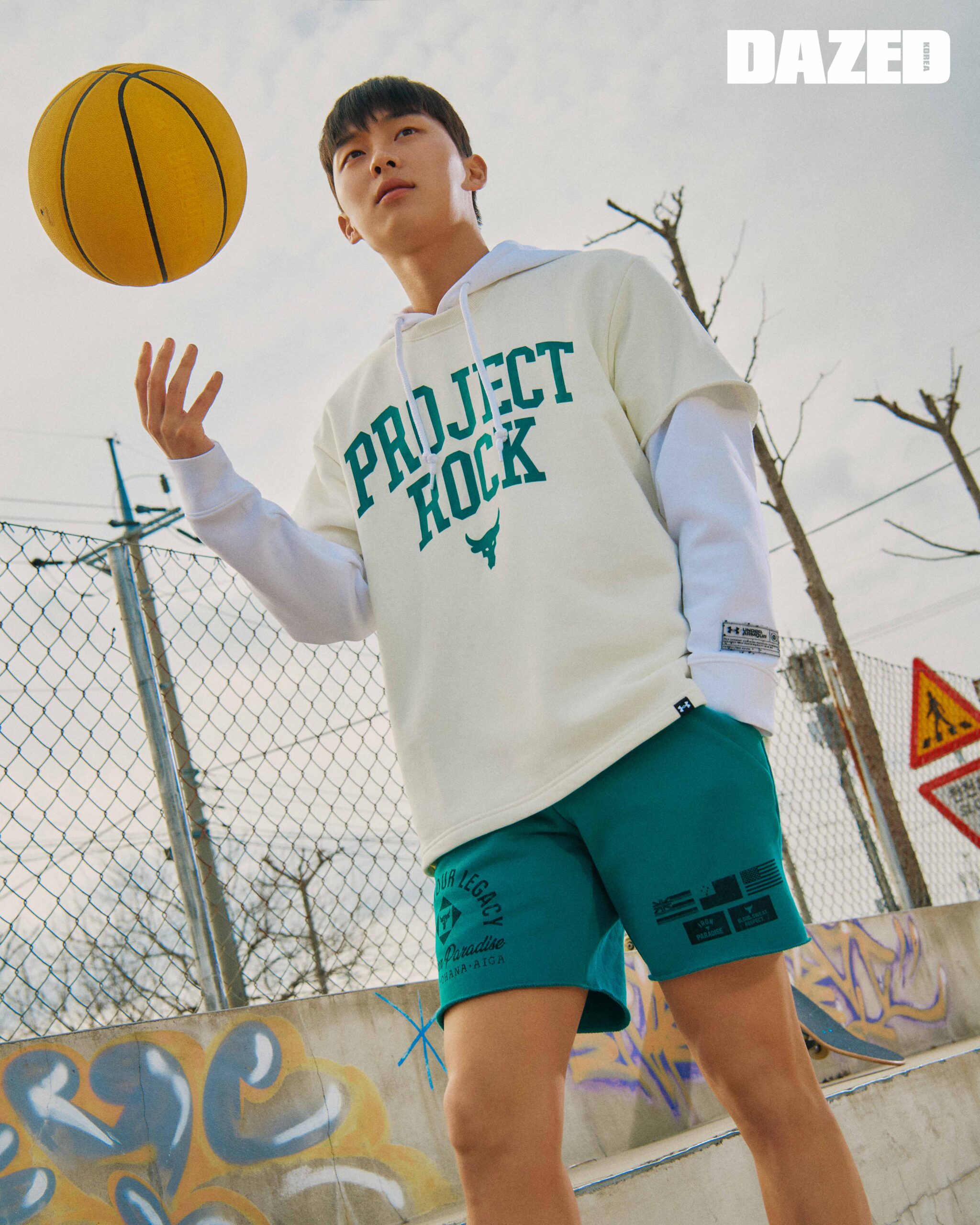 현욱이 입은 프로젝트 락 헤비웨이트 테리 반팔과 UA 서밋 니트 후디, 프로젝트 락 헤비웨이트 테리 쇼츠, 삭스, UA 프로젝트 락 5 트레이닝화는 모두 언더아머(Under Armour). 승민이 입은 UA 코치 스포팅 굿즈 반팔과 프로젝트 락 프린티드 우븐 쇼츠, UA 플로우 다이나믹, 손목 보호대는 모두 언더아머(Under Armour). 태양이 입은 커리 ARC 반팔과 커리 플리스 스웨트팬츠, UA 플로우 다이나믹, 헤드밴드, 손목 보호대는 모두 언더아머(Under Armour).
