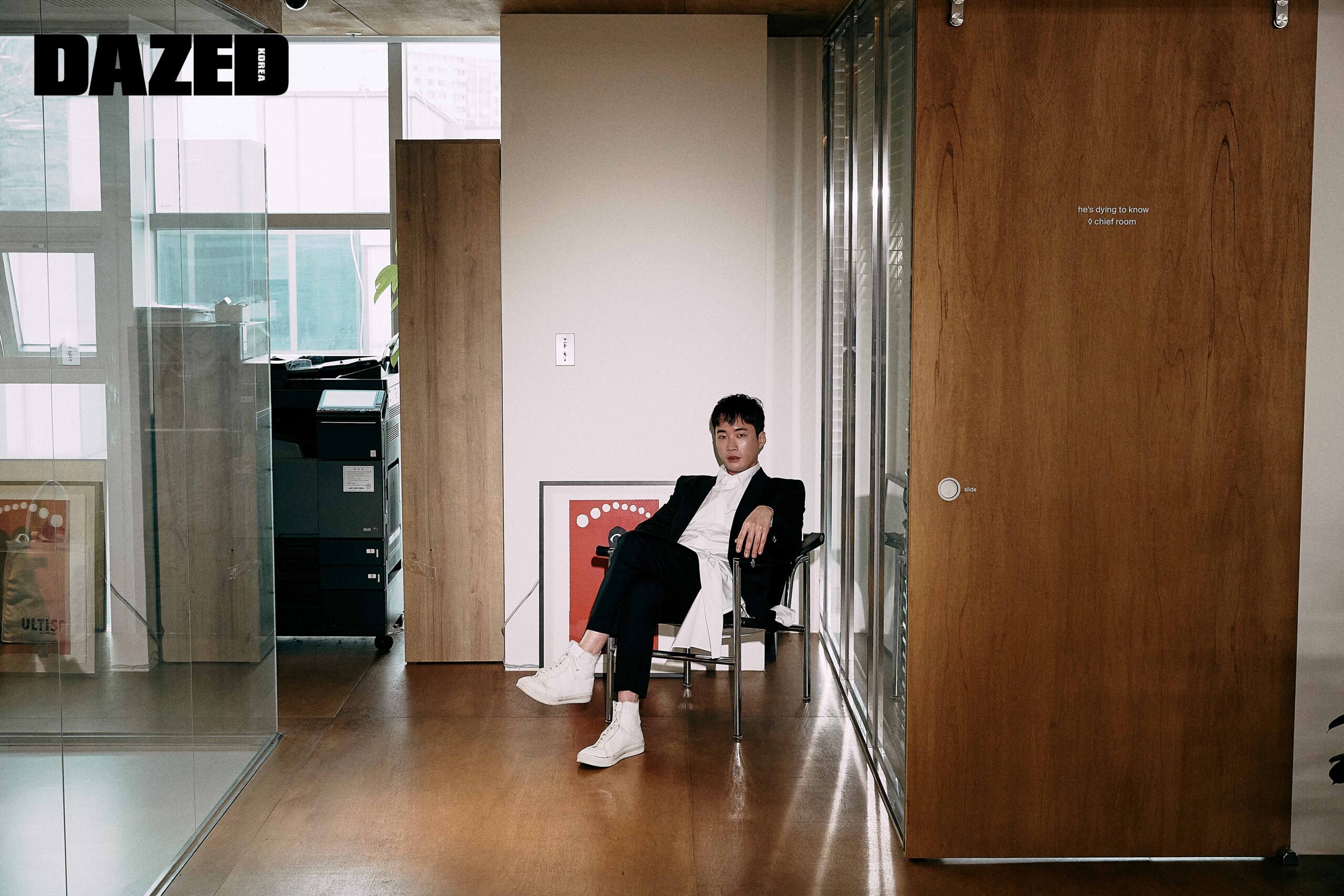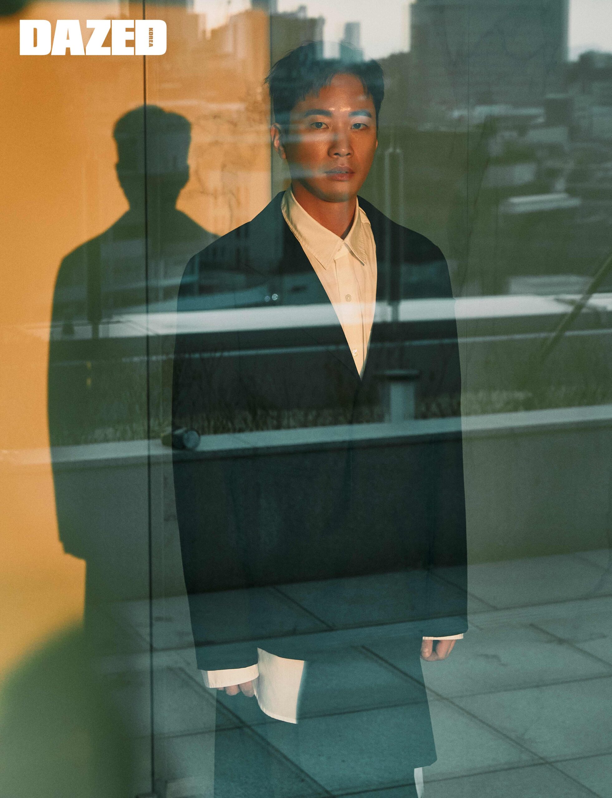 재킷은 요지 야마모토(Yohji Yamamoto), 셔츠는 앤 드뮐미스터(Ann Demuelemeester), 팬츠는 무홍(Moohong).