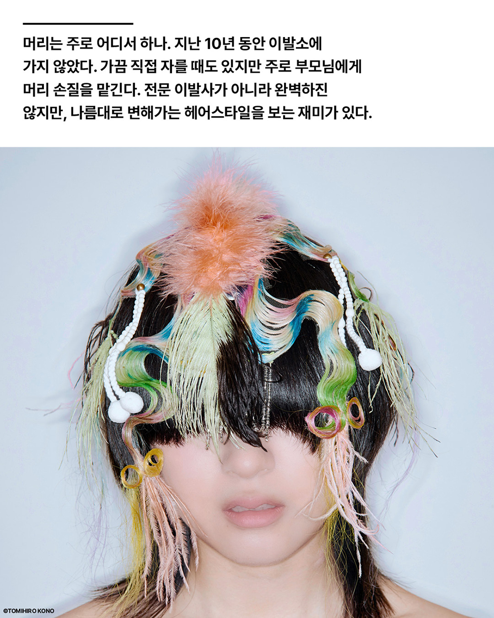 뉴욕에서 돌아온 후 많은 아시아 모델과 일하던 중 ‘뉴진스’를 만났다. 그들은 내 가발을 좋아했고, 멋있게 스타일링해 줘 기뻤다. 나 또한 뉴진스의 팬으로 최근 그들의 곡 ‘OMG’에 푹 빠져 있다.