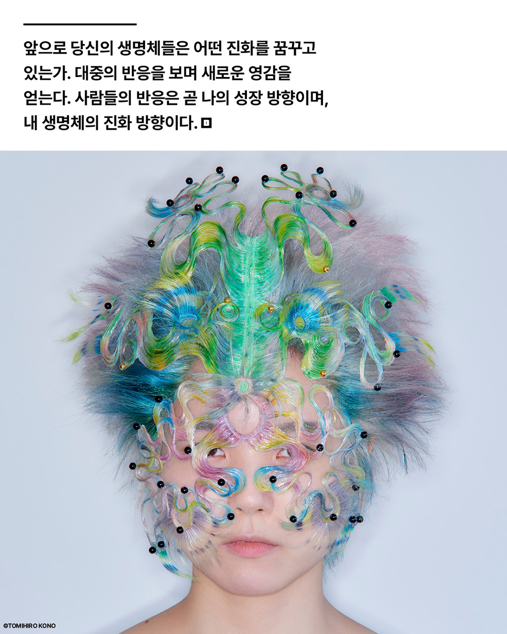 아니메 요소를 넣은 가발 역시 생명체를 표현하기 위해서인가.