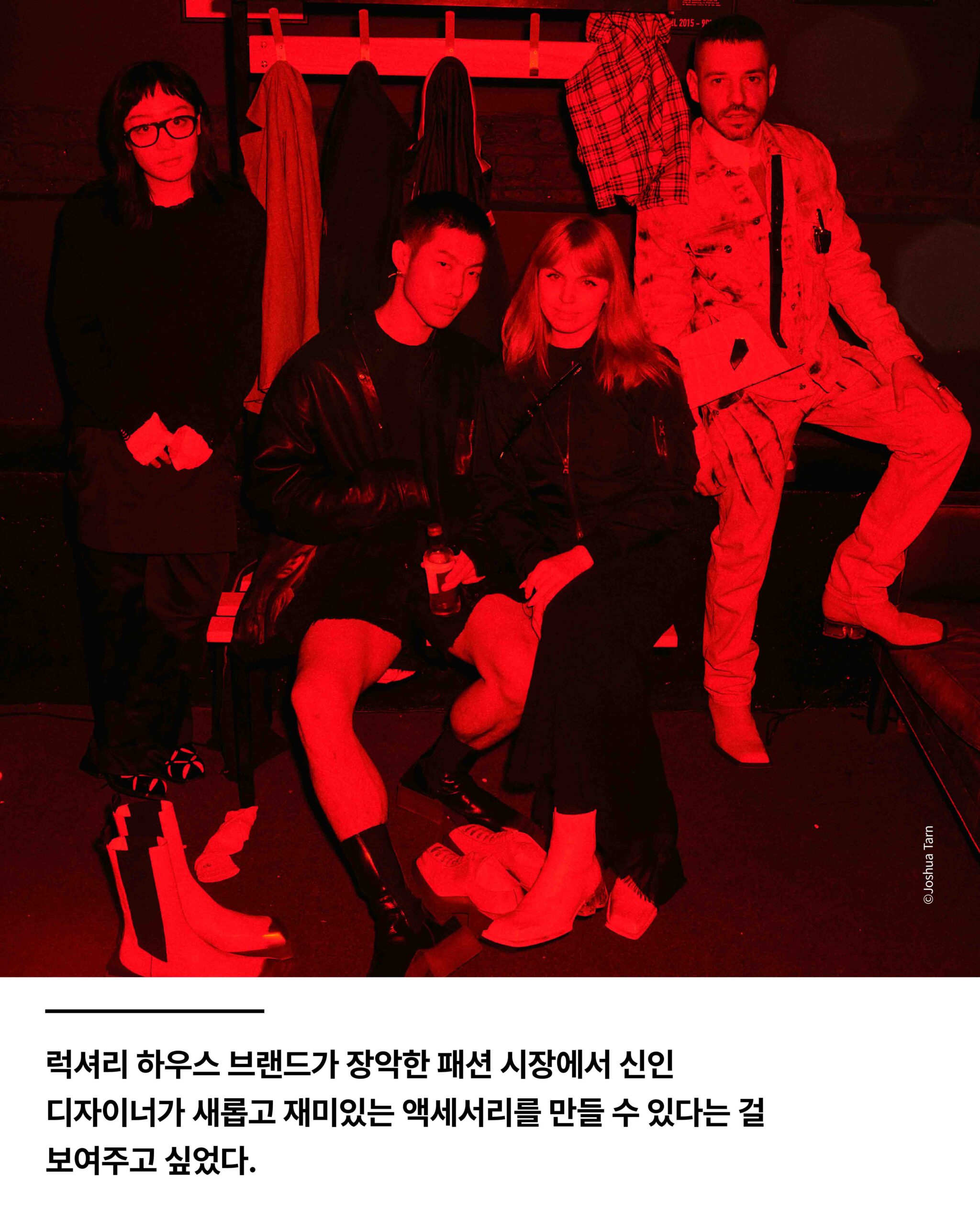 2016년 대학생 시절, ‘왜 인상적인 새로운 브랜드는 없을까’ 의문이 생겼다. 이 질문을 곱씹은 끝에 브랜드를 만들겠다고 결심했다. 럭셔리 하우스 브랜드가 장악한 패션 시장에서 신인 디자이너가 새롭고 재미있는 액세서리를 만들 수 있다는 걸 보여주고 싶었다. 그리고 신인 디자이너, 신생 브랜드, 대중이 모여 커뮤니티를 형성하면 대형 브랜드가 주도하는 패션계의 질서에 저항할 수 있을 것 같았다.