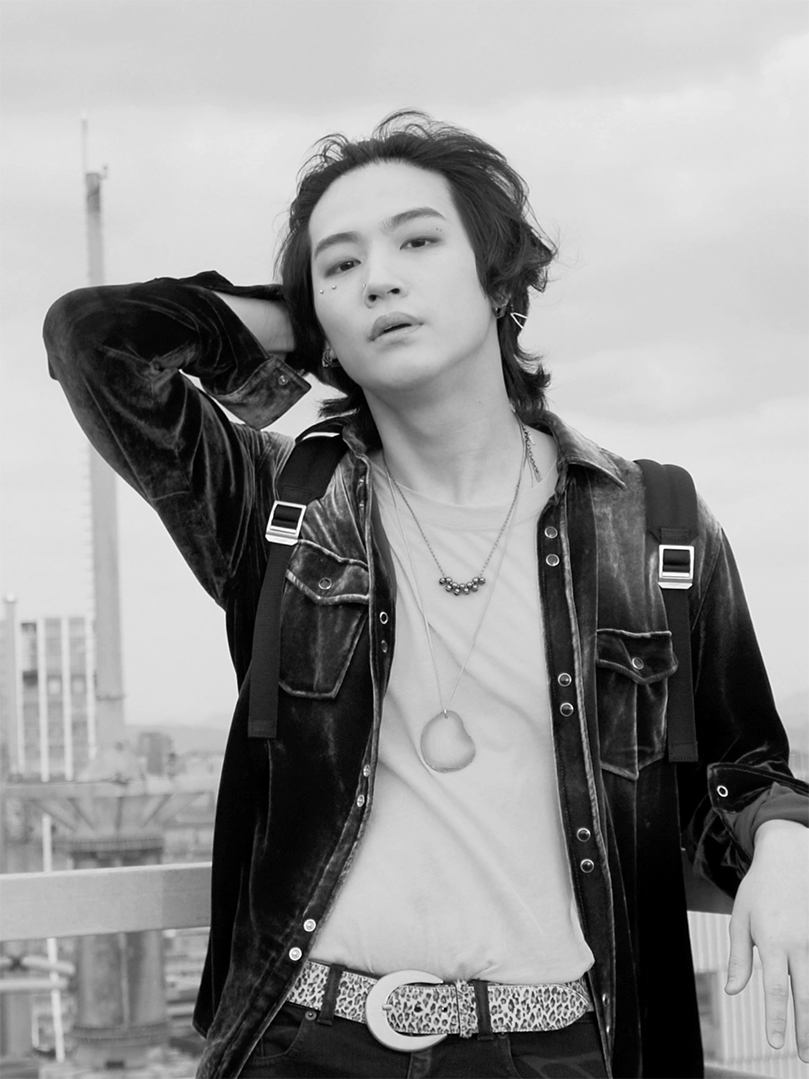 셔츠와 팬츠, 벨트는 모두 생 로랑 by 안토니 바카렐로(Saint Laurent by Anthony Vaccarello).
