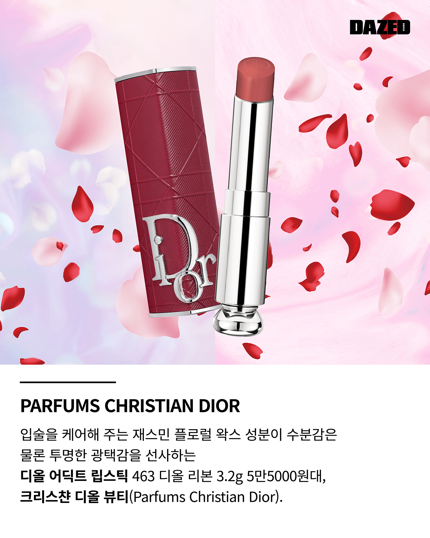 혹여 평소 시도하지 않던 컬러의 아이 메이크업이 부담스럽다면 립 메이크업을 화사하게 표현해 보는 건 어떨까. 이를 대비한 듯 크리스챤 디올 뷰티는 열 가지 새로운 컬러의 디올 어딕트 립스틱을 선보였다. 다양한 컬러는 물론 네 가지 쿠튀르 패션 케이스로 그날 기분과 룩에 따라 조합할 수 있으니 립스틱 하나로 봄을 만끽하기에 제격이다.