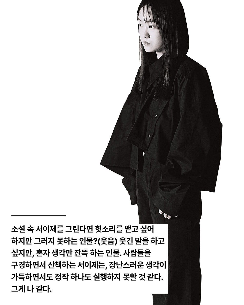 ‘이제’라는 이름, 그리고 그 어감에 대해 곰곰 생각해 봤다. 그러다 떠올린 것은 이제라는 말의 속성이 앞을 향하고 있다는 것이었는데, 문득 그 모습이 서이제의 소설과 꼭 닮아 있다는 느낌을 받았다. 어떤가.