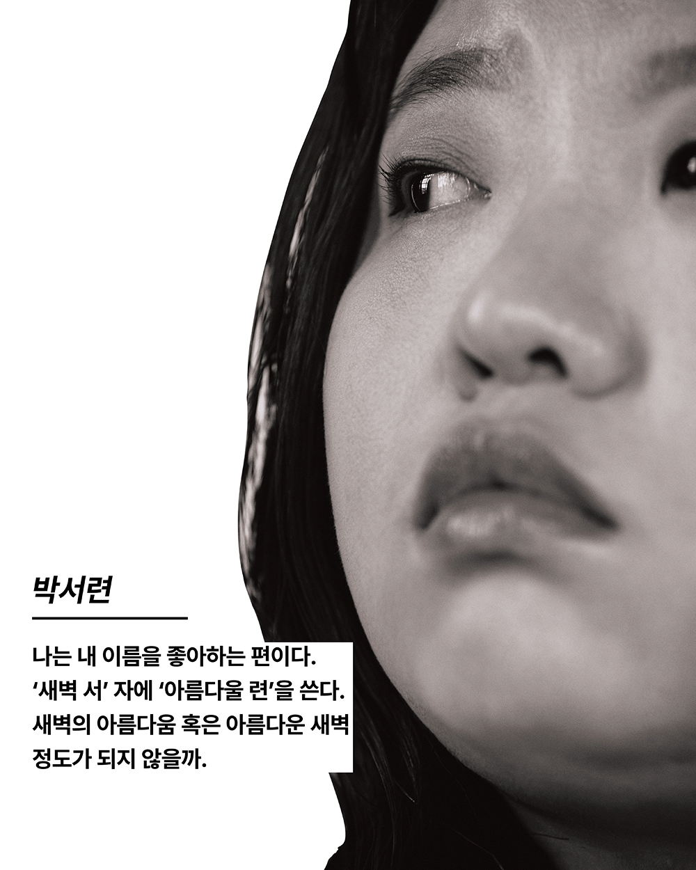 새벽에 많이 깨어 있고, 글도 쓴다.(웃음) 10대 때 이야기이긴 한데, 그때 만나던 친구가 푸른 새벽이라는 가수를 좋아해내 이름의 뜻을 알려준 적 있다. 그러니 어느새벽에 “새벽이 오고 있어. 너를 안아줄 수 있어서 기쁘다” 이런 문자를 보내더라. 별로 안 좋게 헤어졌는데(웃음) 그 기억은 오래간다.