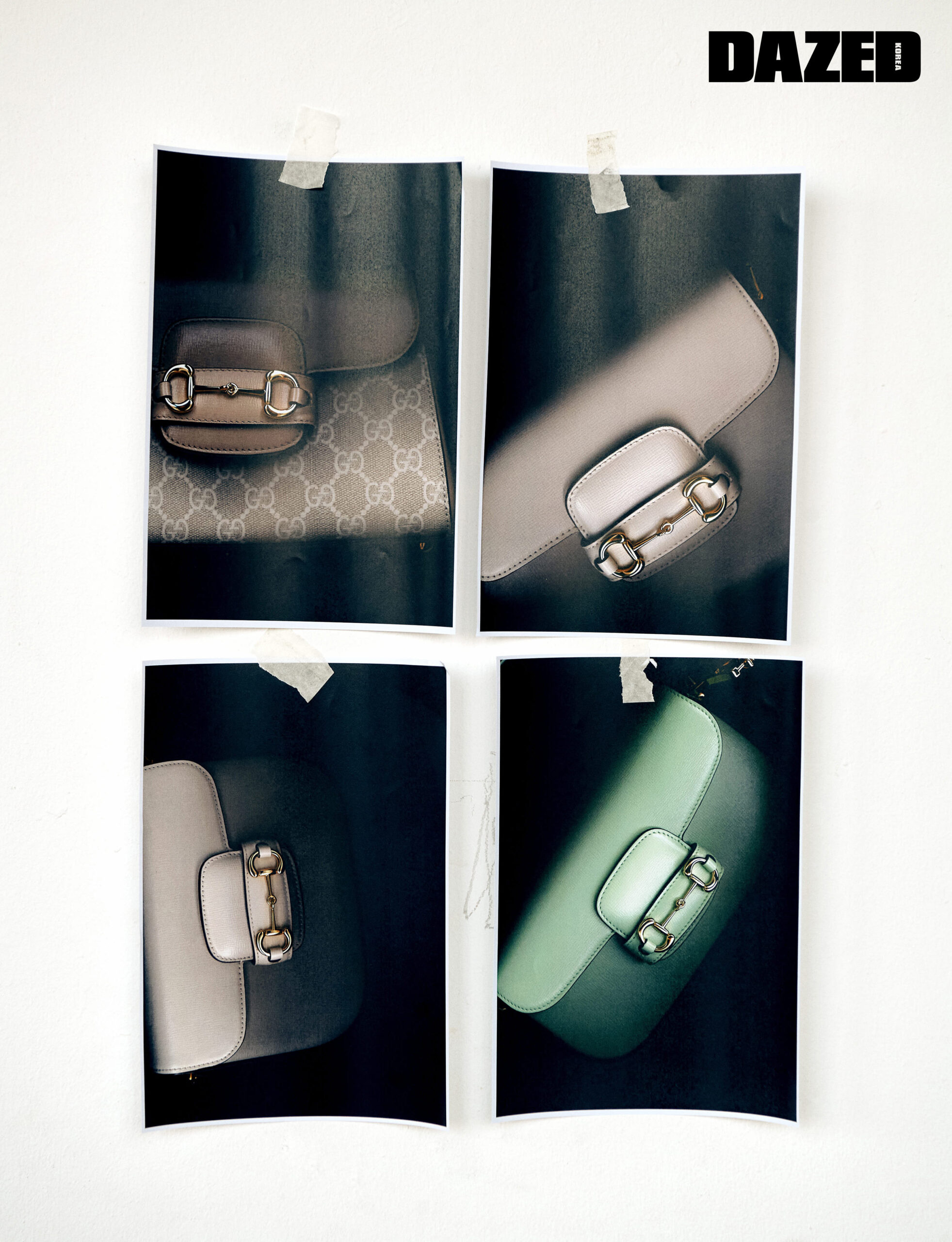 아카이브 스타일에서 영감을 받아 탄생한 베이지 & 화이트 컬러의 구찌 홀스빗 1955 스몰 톱 핸들 백과 빈티지에서 영감을 얻은 라인에 하이브리드 감성을 더한 구찌 홀스빗 1955 화이트 레더 미니 숄더백, 골드 톤 디테일의 구찌 홀스빗 1955 라이트 그린 레더 숄더백은 모두 구찌(Gucci).