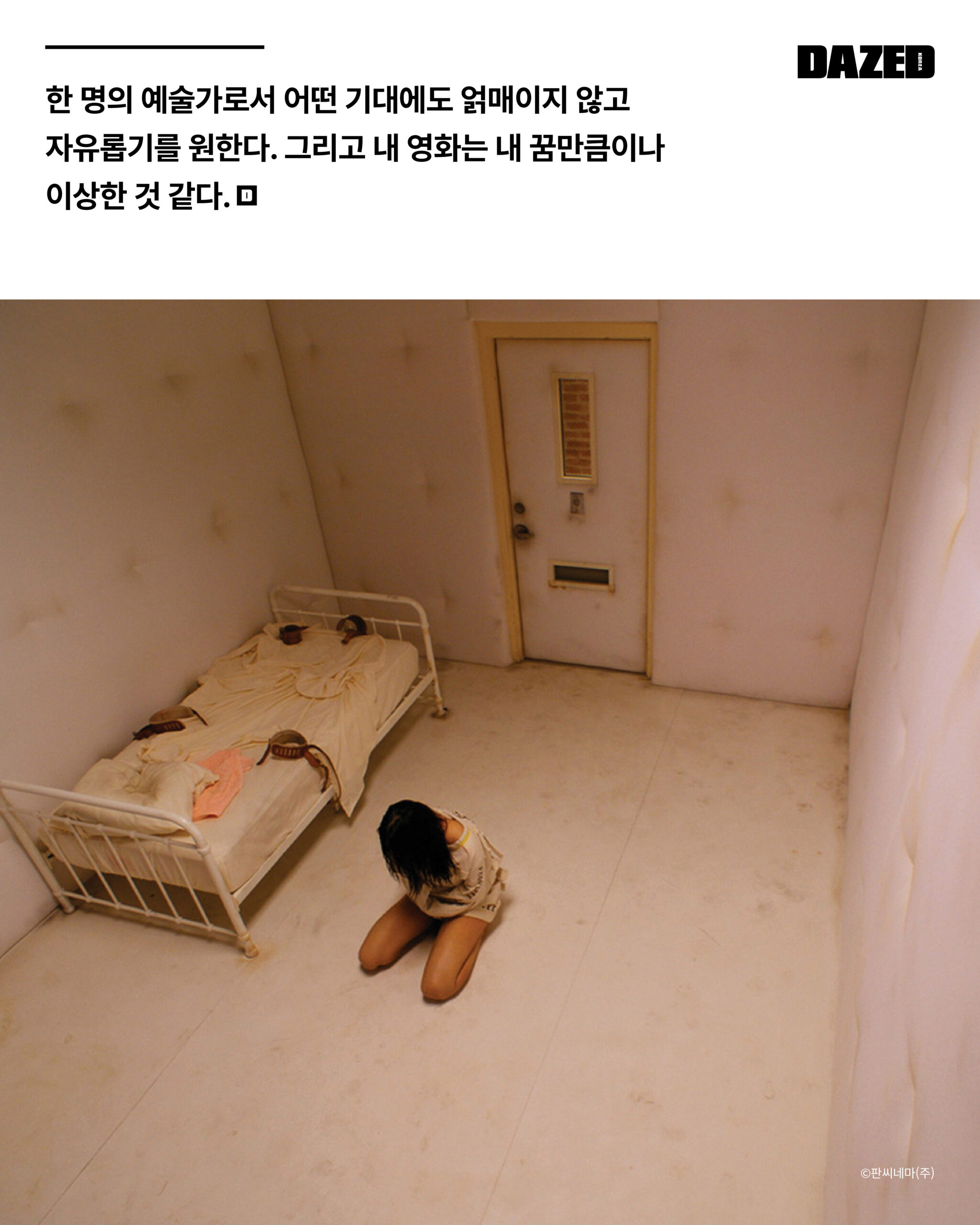 영화란 잠시나마 이 세상을 떠나서 꿈속으로 들어가게 해주는 기회라고 생각한다. 우리는 공유된 꿈의 공간을 여행하고 있고, 그 꿈은 마치 진짜처럼 느껴진다. 현실적이지만 터무니없는 꿈 말이다. 감정적이고 우주적이다. 때로는 그것이 무섭기도 하다. 하지만 나는 누군가를 깜짝 놀래키기 위한 ‘호러’를 추구하는 것은 아니다. 나는 인간 모두가 갖고 있는 깊은 두려움에 관심이 많다. 내 첫영화 에서 뱀파이어는 궁극적으로 외로운 아웃사이더였다. 소녀는 욕구에 시달리면서도 고립되고 외로웠는데, 관객 모두가 그런 감정을 느꼈기 때문에 모두가 공감할 수 있었다고 생각한다. ‘점프 스케어jump scare’ 가 일어날 수는 있지만 일부러 점프 스케어를 만들려고 하지는 않는다. 나는 인간적이고 실제적인 두려움, 즉 내 안의 두려움을 직시하고 그것을 캐릭터를 통해 탐구하는 방법을 찾고 있다. 궁극적으로 사이키델릭한 동화를 만든다고 생각한다. 동화에는 규칙이 없고 어디든 갈 수 있다. 나는 한 명의 예술가로서 어떤 기대에도 얽매이지 않고 자유롭기를 원한다. 그리고 내 영화는 내 꿈만큼이나 이 상한 것 같다.