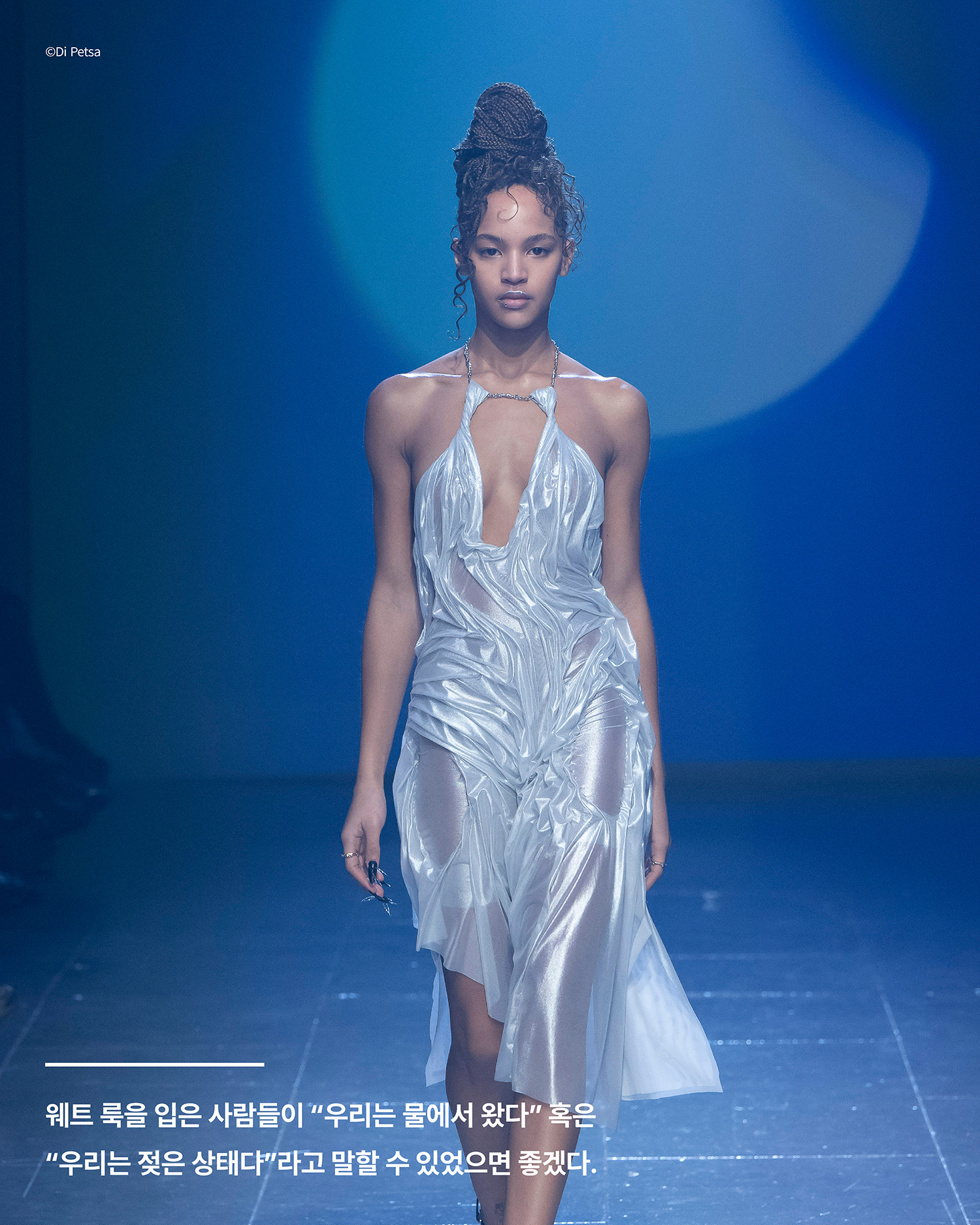 이번 쇼에서 직접 퍼포먼스를 선보였다. 퍼포먼스와 함께 내레이션 또한 캣워크와 잘 어우러져 더욱 인상 깊었다.