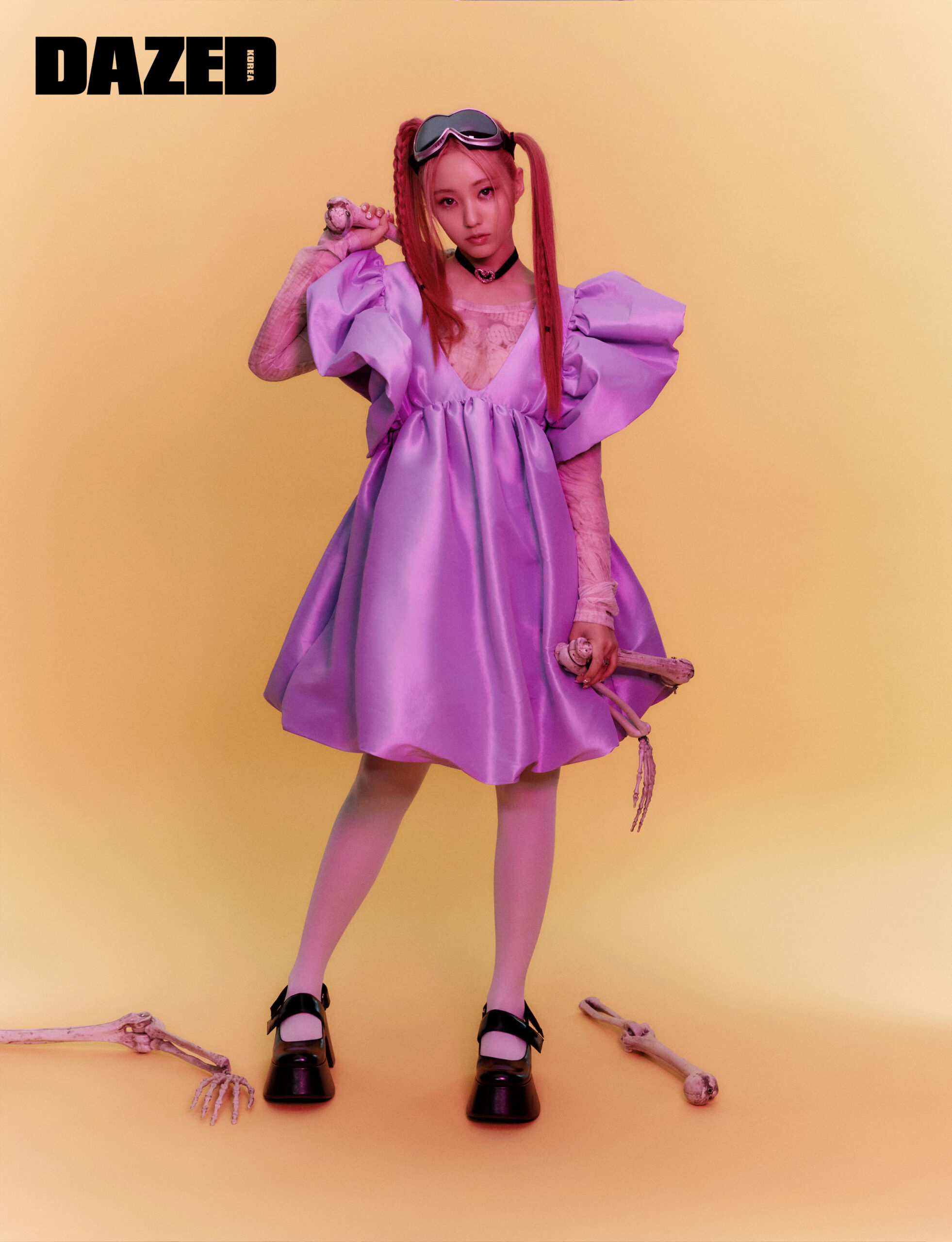 메리제인 슈즈는 찰스앤키스(CHARLES & KEITH), 하트 초커는 스와로브스키(Swarovski), 타이츠는 에디터의 것.