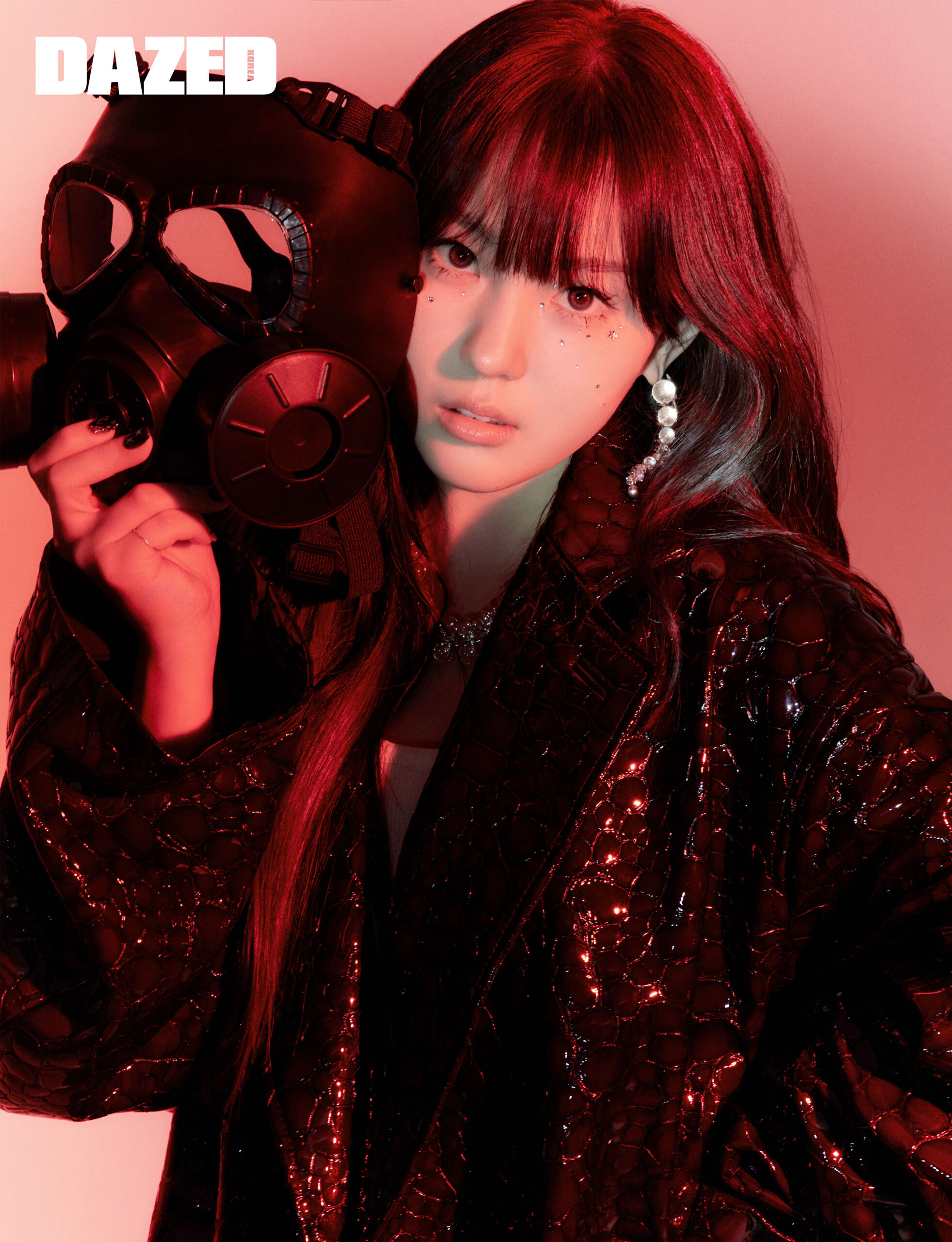 더 슬리브리스 드레스와 이어링은 알렉산더 맥퀸(Alexander McQueen), 스터드 초커는 스틸에디션(Steel Edition), 블랙 링은 뱀버락샤(Bamberocksha).