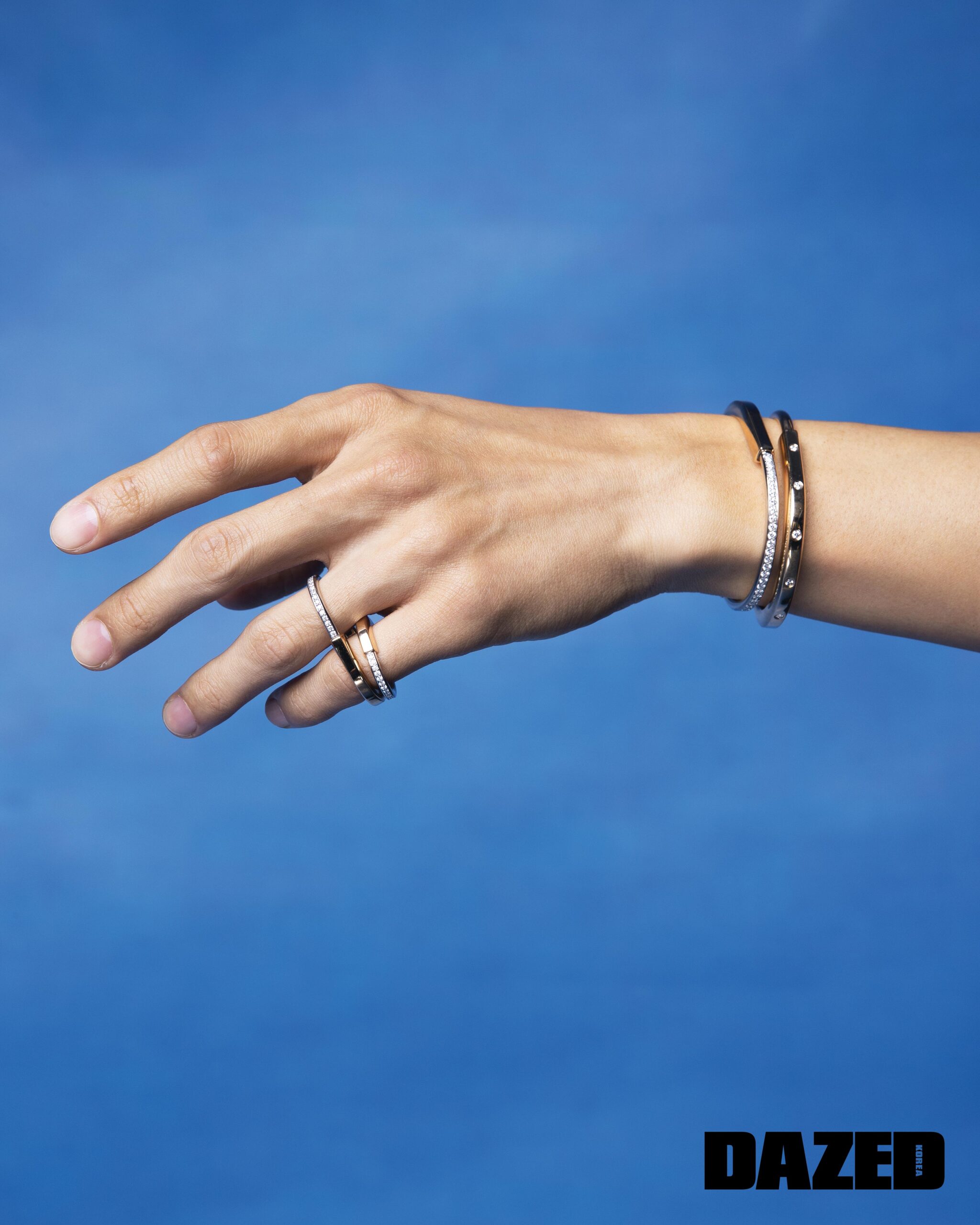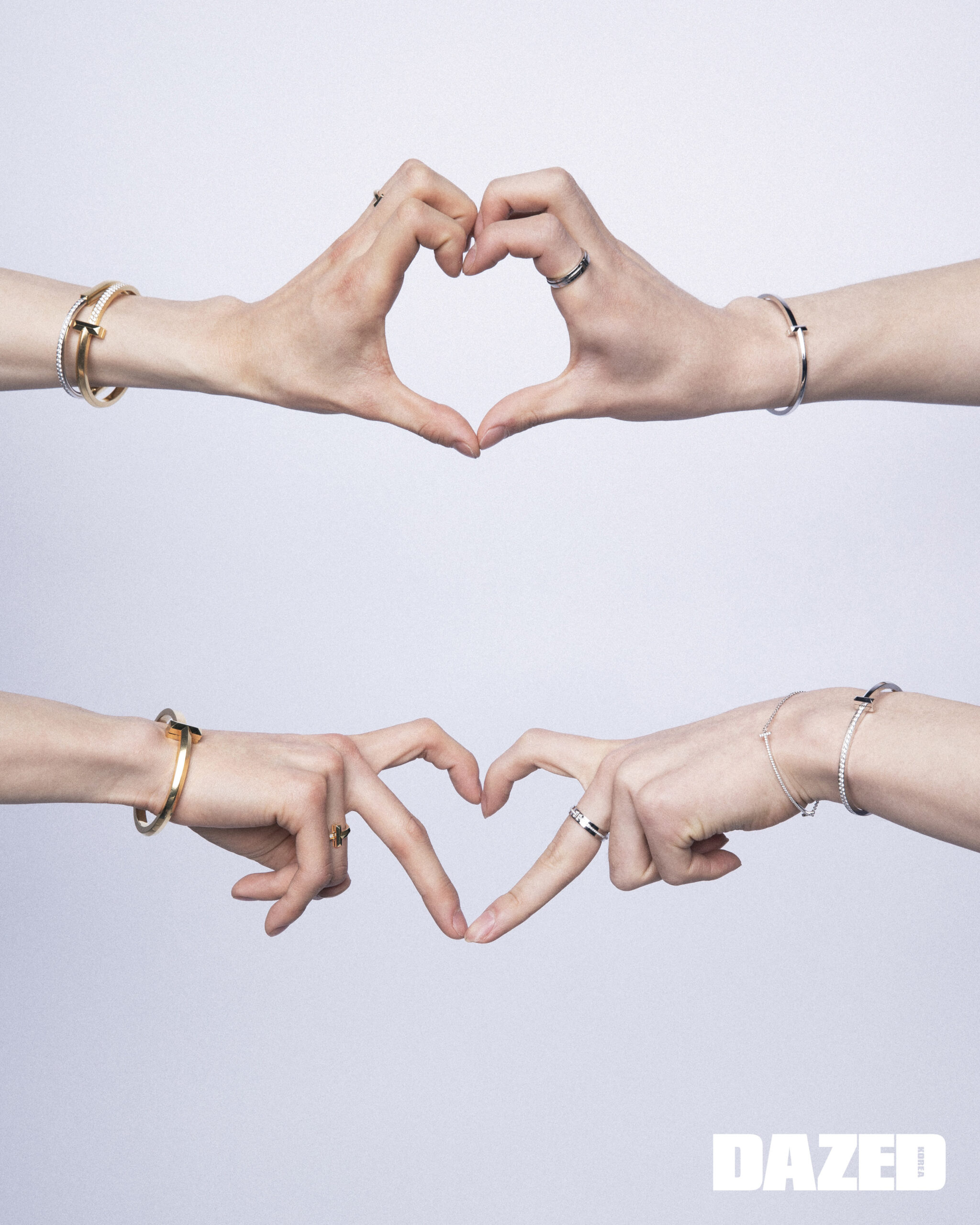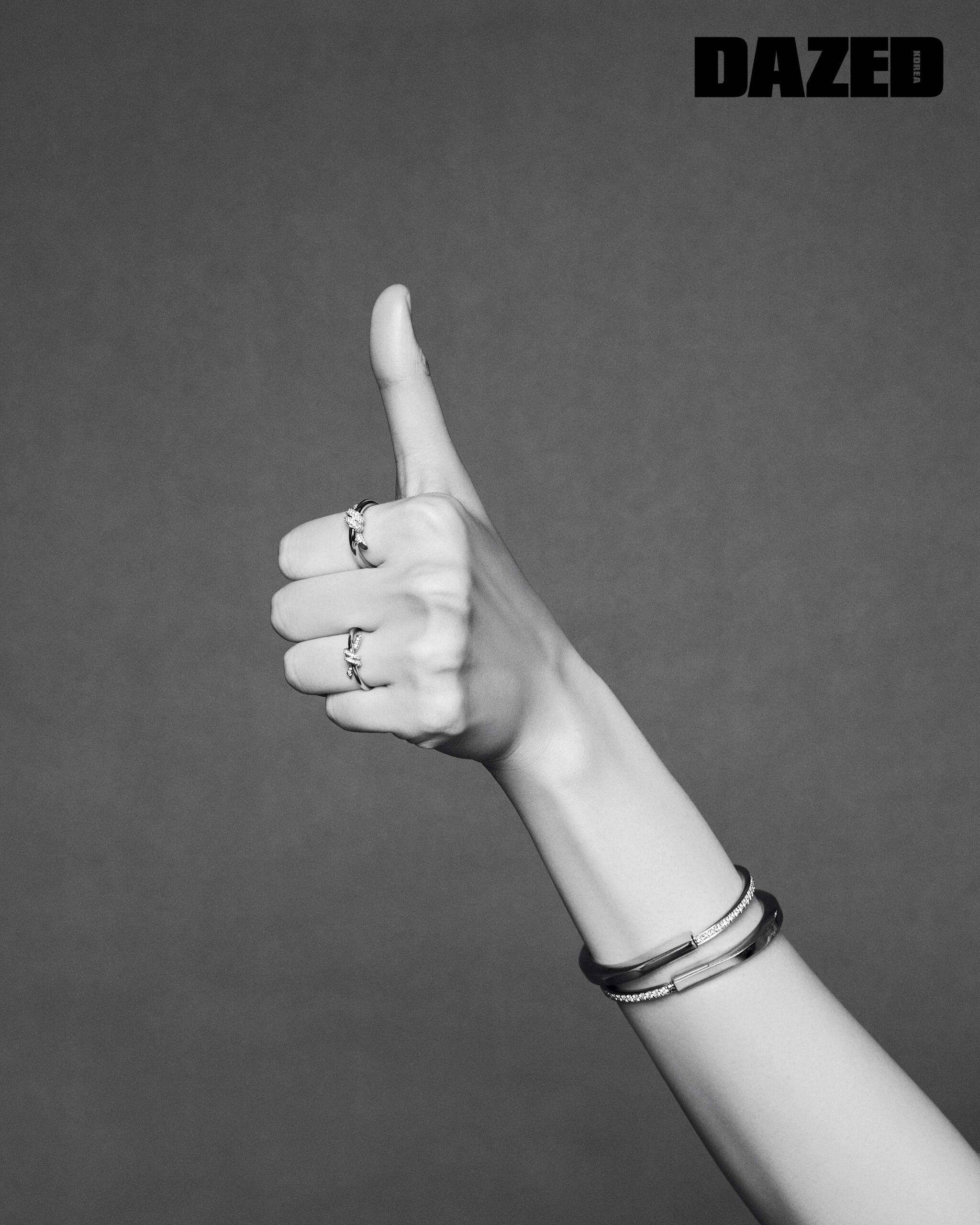 제이크가 착용한 18K 옐로 골드 티파니 T1 내로우 힌지드 뱅글과 라운드 브릴리언트 컷 다이아몬드를 세팅한 18K 옐로 골드 티파니 T1 와이드 하프 다이아몬드 힌지드 뱅글, 라운드 브릴리언트 컷 다이아몬드를 세팅한 18K 옐로 골드 티파니 락 하프 파베 다이아몬드 뱅글, 라운드 브릴리언트 컷 다이아몬드를 세팅한 18K 옐로 골드 티파니 T1 내로우 하프 다이아몬드 링, 18K 옐로 골드 티파니 T1 내로우 링은 모두 티파니(Tiffany & Co.). 성훈이 착용한 18K 화이트 골드 티파니 T1 내로우 힌지드 뱅글과 라운드 브릴리언트 컷 다이아몬드를 세팅한 18K 화이트 골드 티파니 T1 내로우 하프 다이아몬드 힌지드 뱅글, 다이아몬드를 세팅한 18K 화이트 골드 티파니 T 스마일 브레이슬릿, 다이아몬드를 세팅한 18K 화이트 골드 티파니 T 투 내로우 링, 18K 화이트 골드 티파니 T 투 내로우 링은 모두 티파니(Tiffany & Co.).