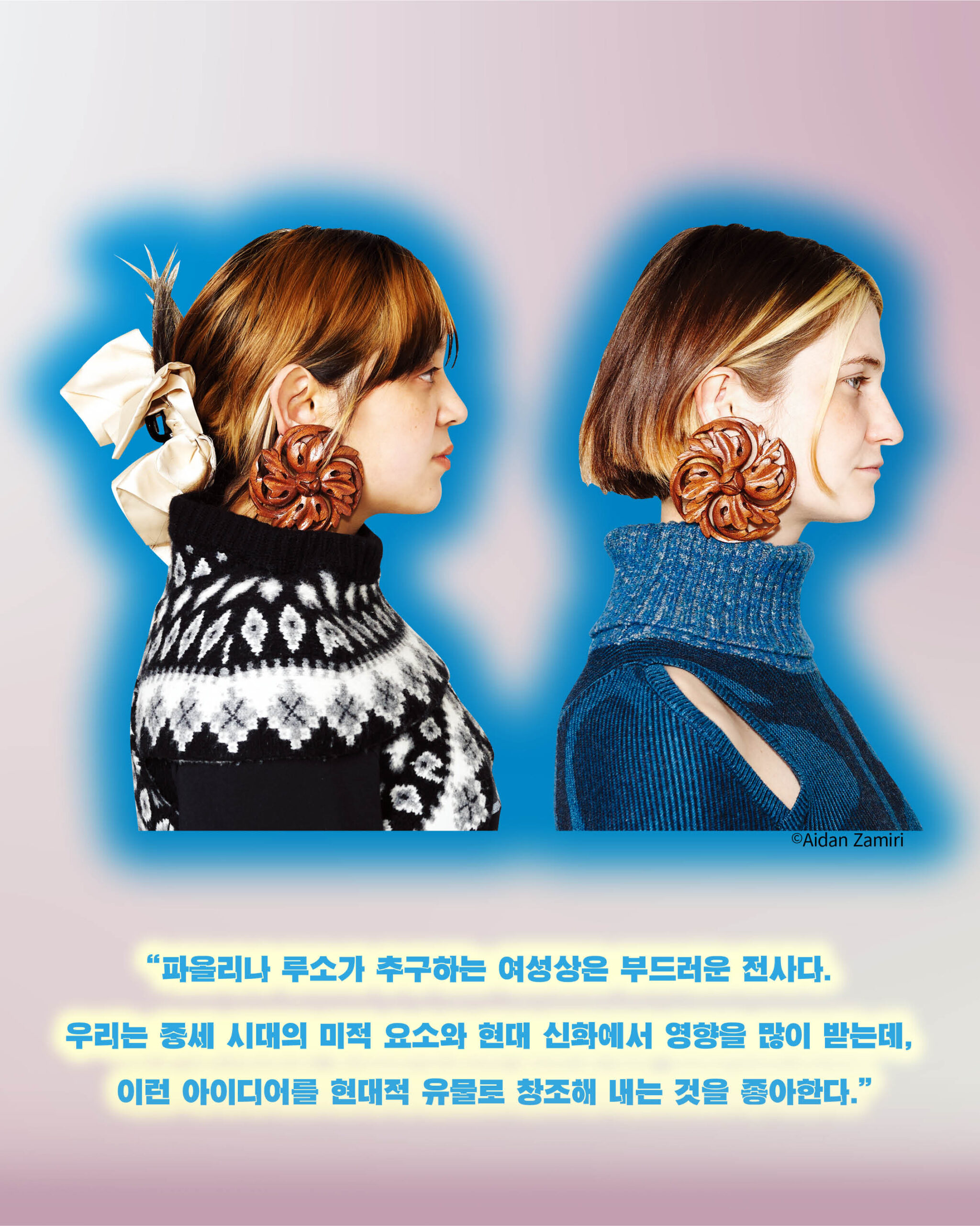 2023년 가을/겨울 컬렉션의 주제는 시티 피크닉이다. 교외에 살고 있지만 대도시에서 살고 싶은 꿈이 있는 여자에 관한 내용이다. 현재와 과거 사이의 간극을 채우기 위해, 그리고 이를 이용해 텍스타일과 모양 측면에서 재미를 주기 위해 이런 테마를 만들었다. 이뿐 아니라 우리는 활동성과 보온성 등 옷의 기능성을 놓치지 않으면서도 입었을 때 향수가 느껴지기를 바라는 마음에 빈티지 냅킨의 깅엄체크 패턴에서 영감을 받았다. 엽서 속 도시의 몽환적인 그림 같은 이상과 현실 사이의 간극이 컬렉션에 잘 녹아들어 절충되었으면 좋겠다고 생각했다.