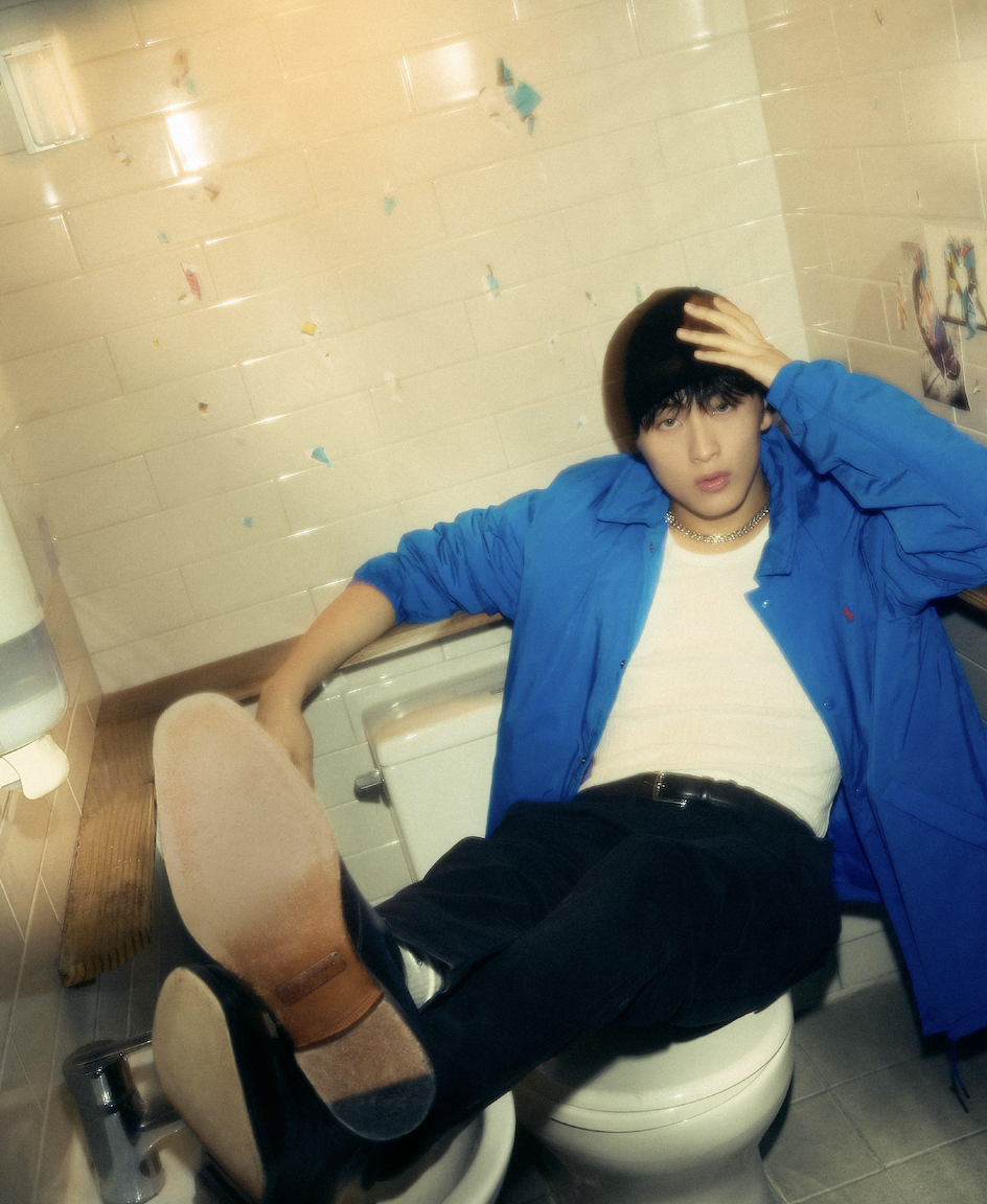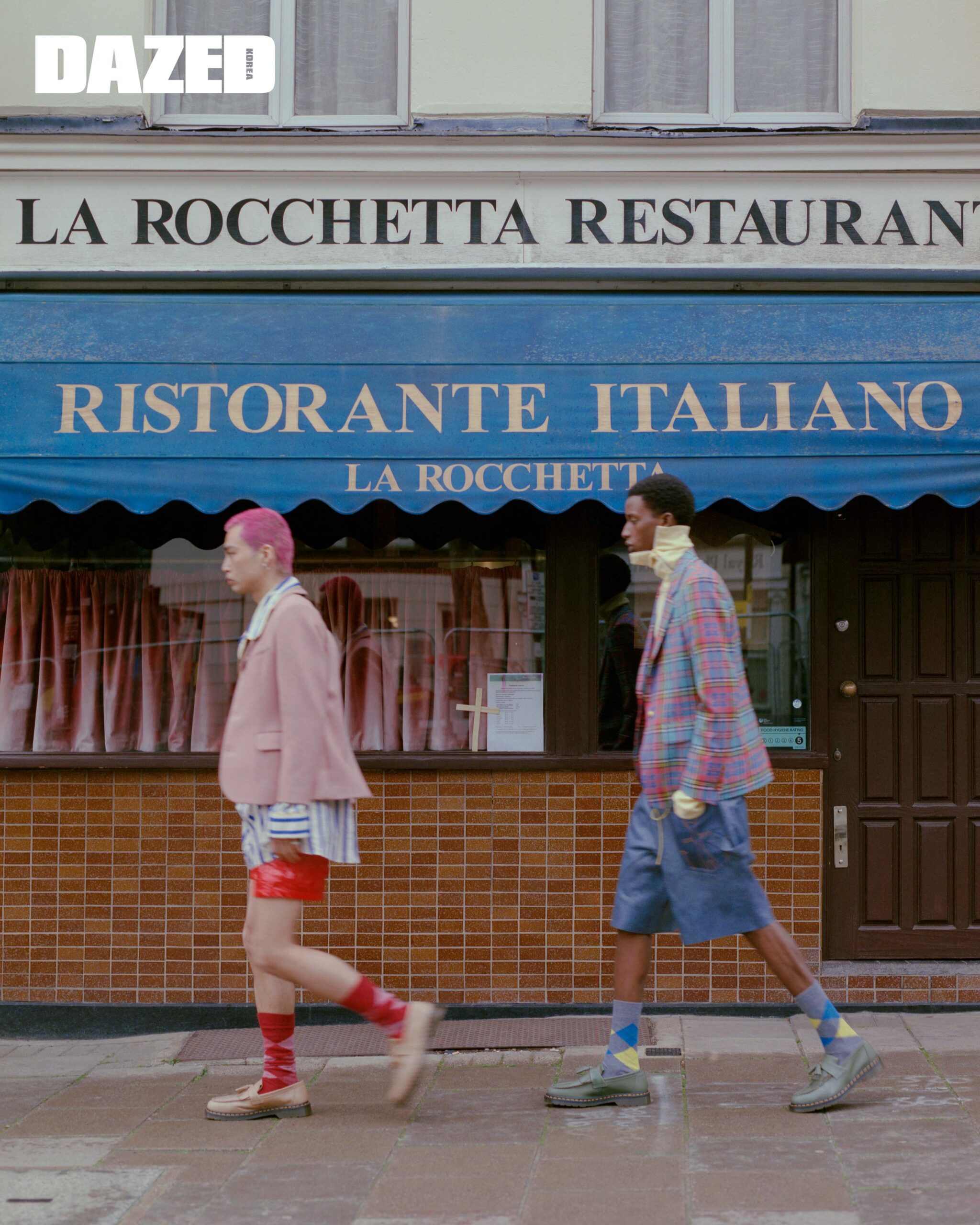 마키토가 입은 핑크 블레이저는 몰리 고다드(Molly Goddard), 스트라이프 패턴 셔츠는 비비안 웨스트우드(Vivienne Westwood), 레드 쇼츠는 로빈 린치(Robyn Lynch), 로퍼는 닥터마틴(Dr. Martens), 삭스는 벌링턴(Burlington). 기던이 입은 체크 재킷은 비비안 웨스트우드(Vivienne Westwood), 옐로 셔츠는 로빈 린치(Robyn Lynch), 쇼츠는 JW 앤더슨(JW Anderson), 로퍼는 닥터마틴(Dr. Martens), 삭스는 벌링턴(Burlington).
