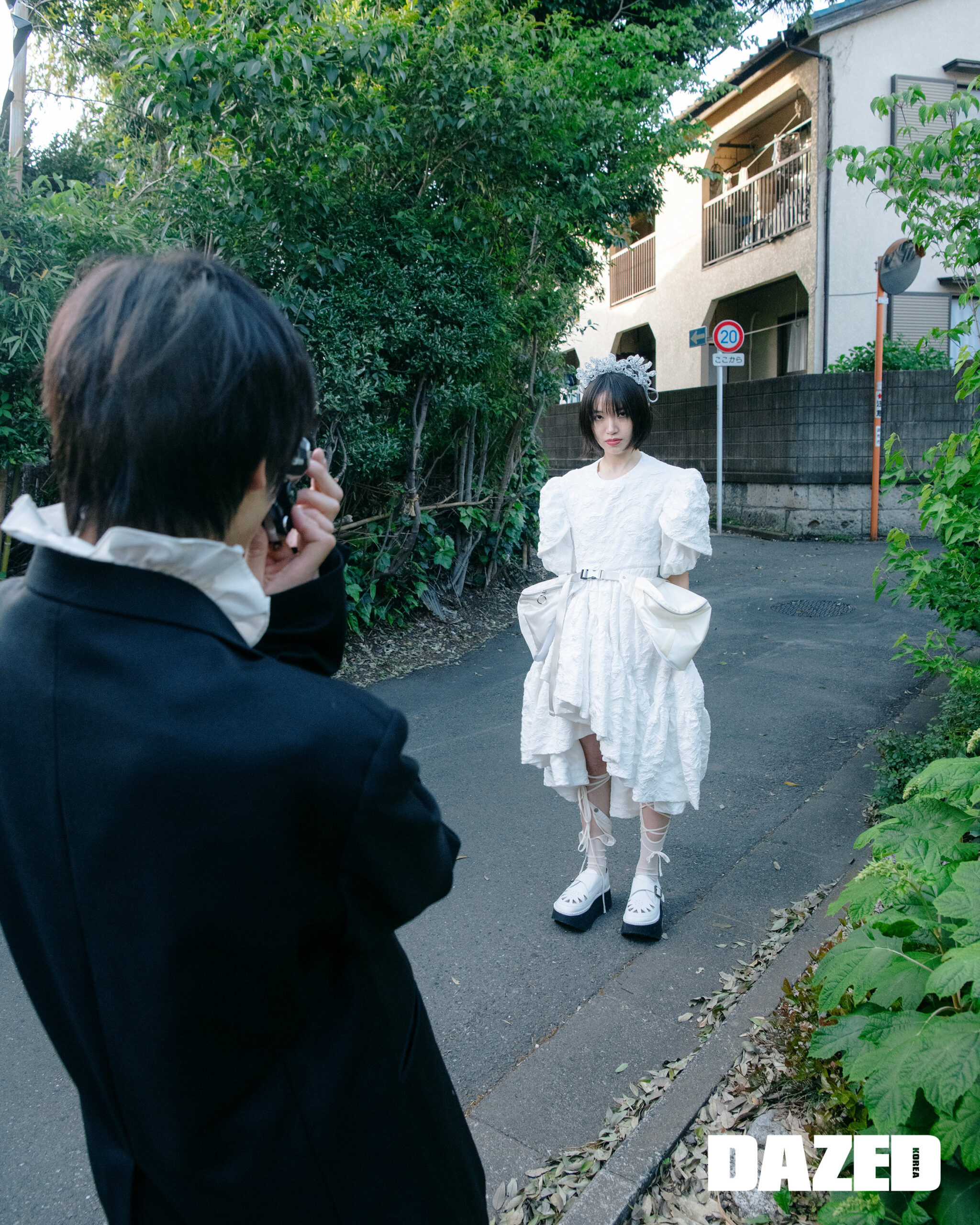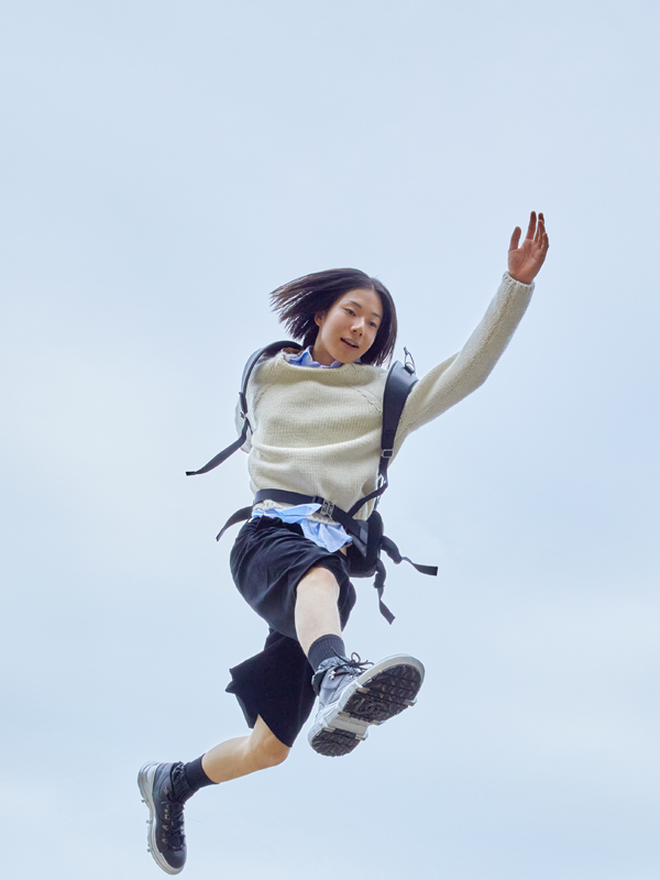 카디건과 스커트는 씨에프씨엘(CFCL), 튈 캐미솔은 치카 키사다(Chika Kisada), 슈즈는 미키오사카베×제니폭스(Mikiosakabe×Jennyfax).