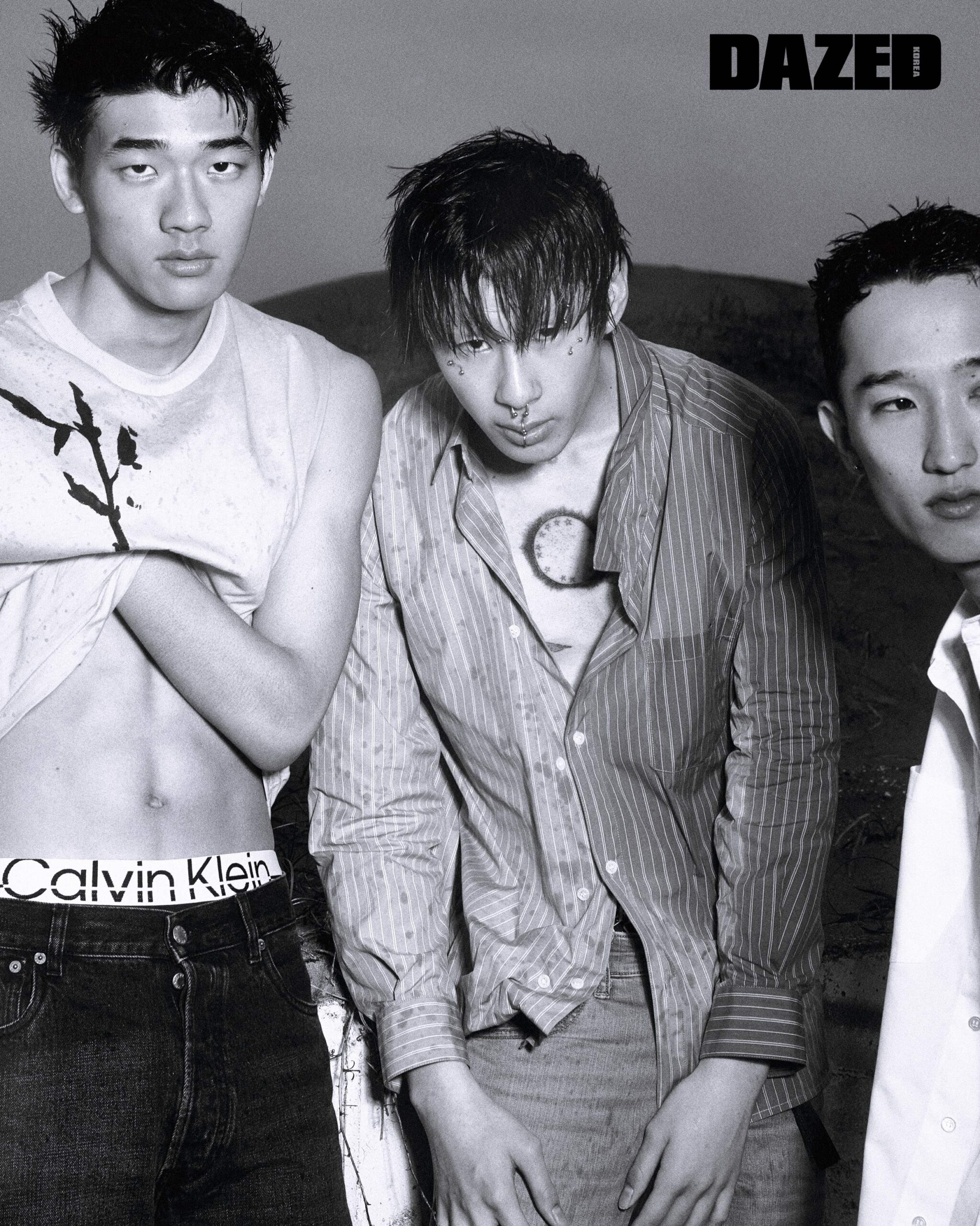 히다카가 입은 프린트 슬리브리스 톱과 데님 쇼츠는 프라다(Prada), 언더웨어는 캘빈클라인 언더웨어(Calvin Klein Underwear). 미유키가 입은 스트라이프 셔츠는 스도쿠(soduk), 데님 팬츠는 캘빈클라인 진(Calvin Klein Jeans), 언더웨어는 캘빈클라인 언더웨어(Calvin Klein Underwear). 고우가 입은 셔츠는 스도쿠(soduk), 데님 팬츠는 캘빈클라인 진(Calvin Klein Jeans), 언더웨어는 캘빈클라인 언더웨어(Calvin Klein Underwear).