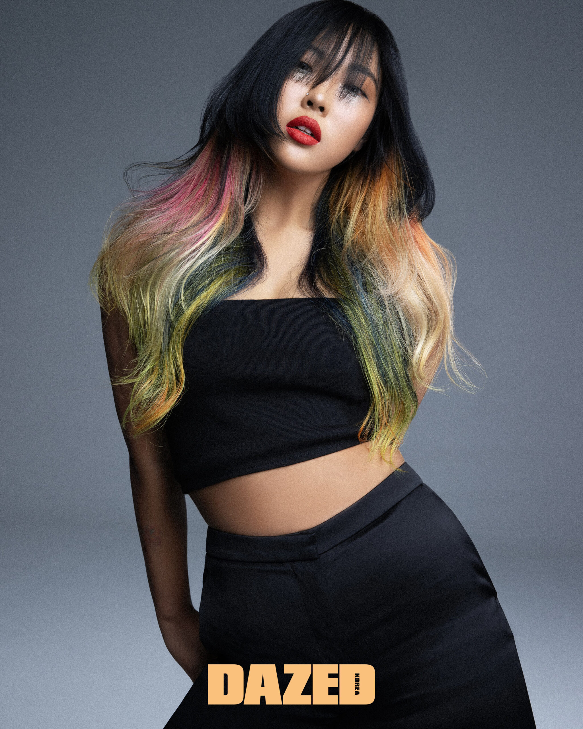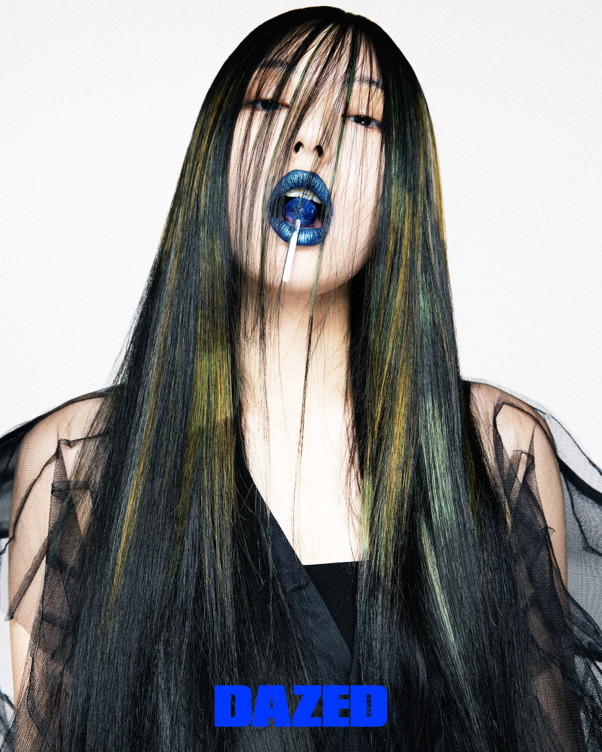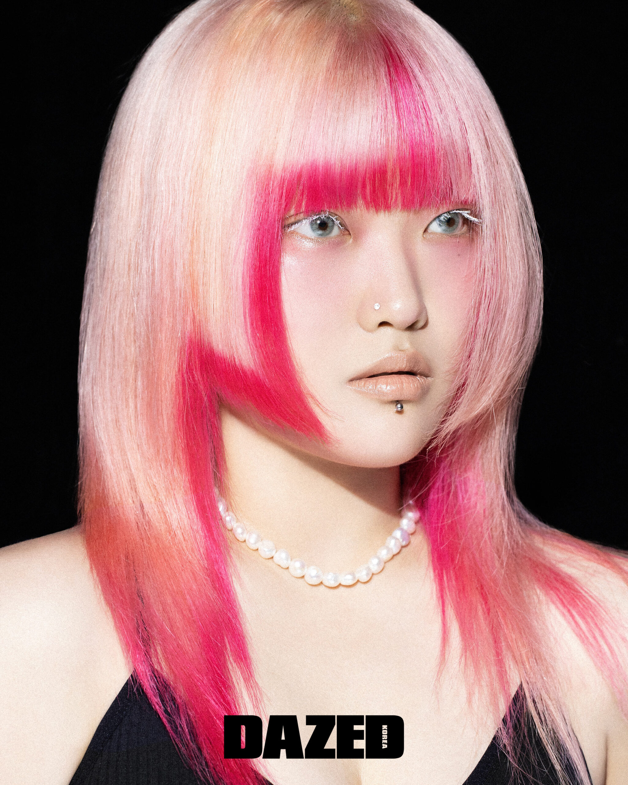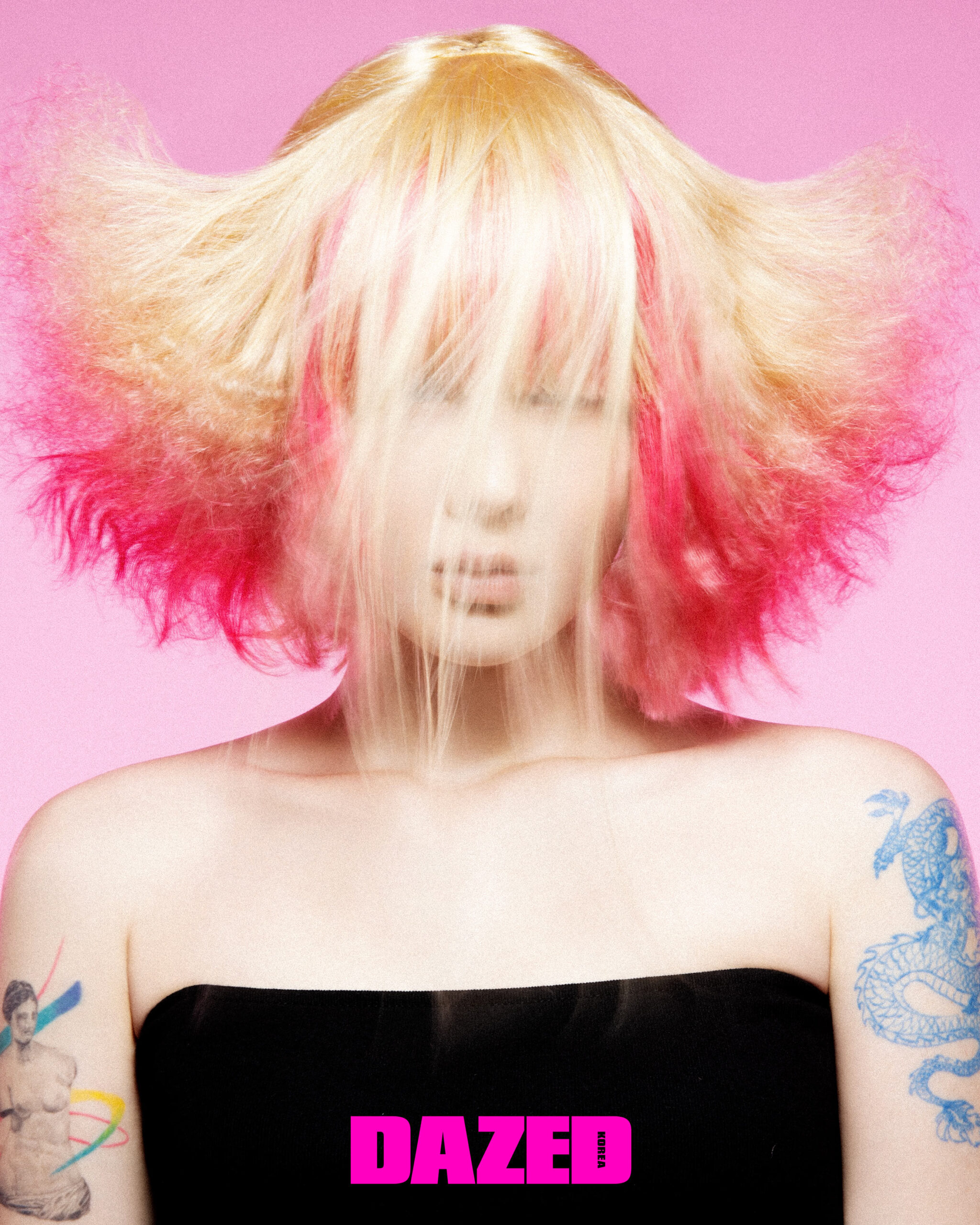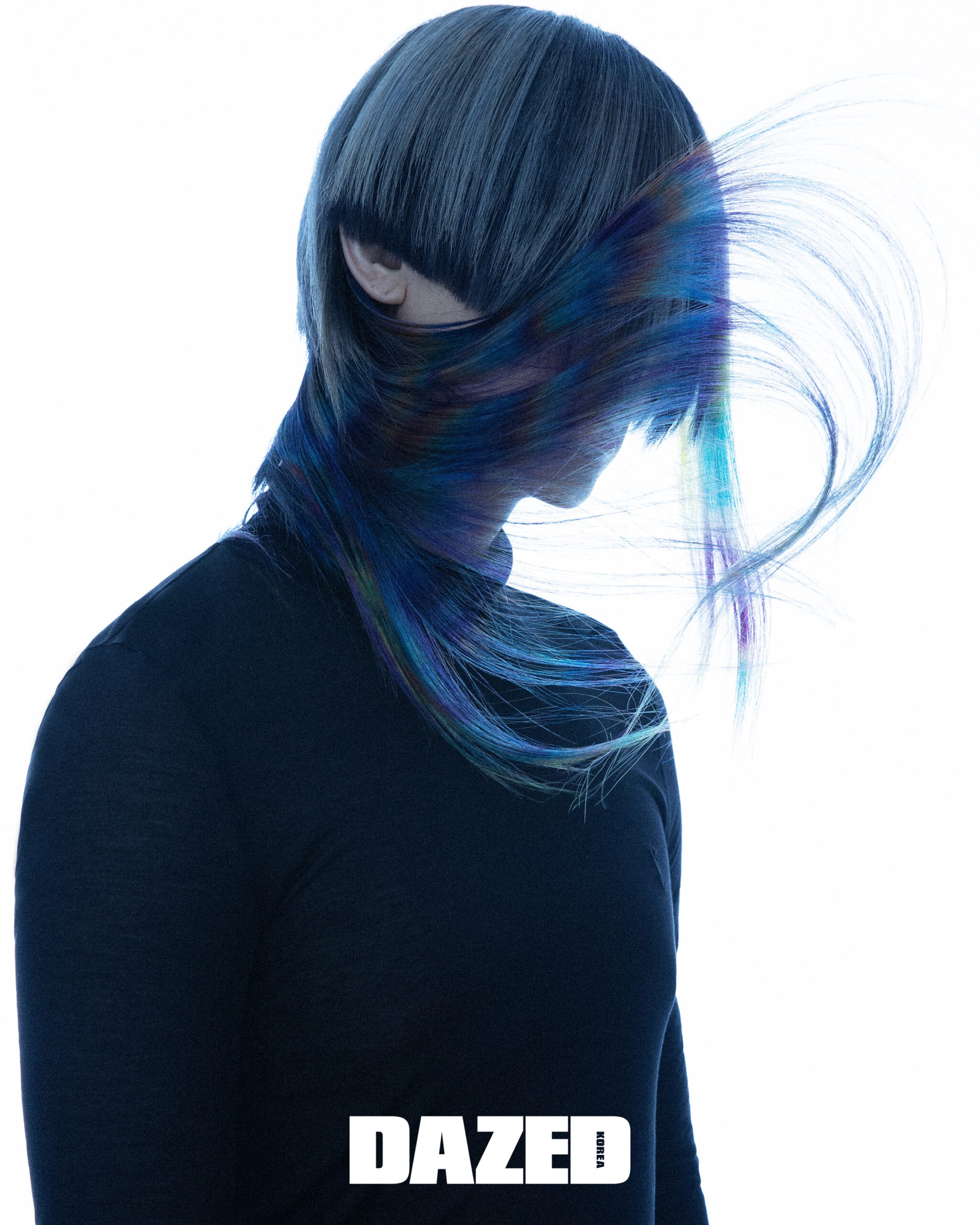 사용한 헤어 제품은 밀본 에노그 홀리커라인 & 플레이라인(Milbon Enog Holicer line & Play line), 시스루 슬리브리스 톱은 릭 오웬스(Rick Owens), 브라톱은 에디터의 것.