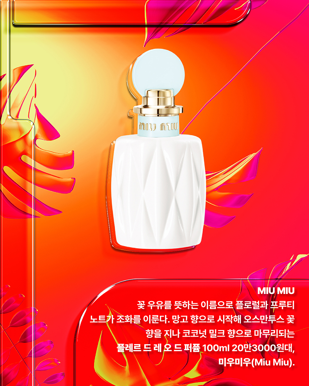 손은 눈보다 빠르다. 그렇지만 손보다 더 빠른 건 바로 코다. 사무실에서 동료와 하하 호호 사담을 나누다 가도 멀리서 선배의 알싸한 향수 냄새가 나면 바로자리로 돌아가 괜스레 키보드를 열심히 두들긴다. 이 후각 레이더는 여름이 되자 더 활성화되며 아주 옅은 향에도 민감하게 반응하고 있다. 그래서인지 향긋하기만 하던 향수도 여름이 되면 영 독하게 느껴져 손이 잘 가지 않는다. 이게 무슨 의미인 줄 아는가? 바로 올여름 새로운 향수를 들일 때가 됐다는 것.