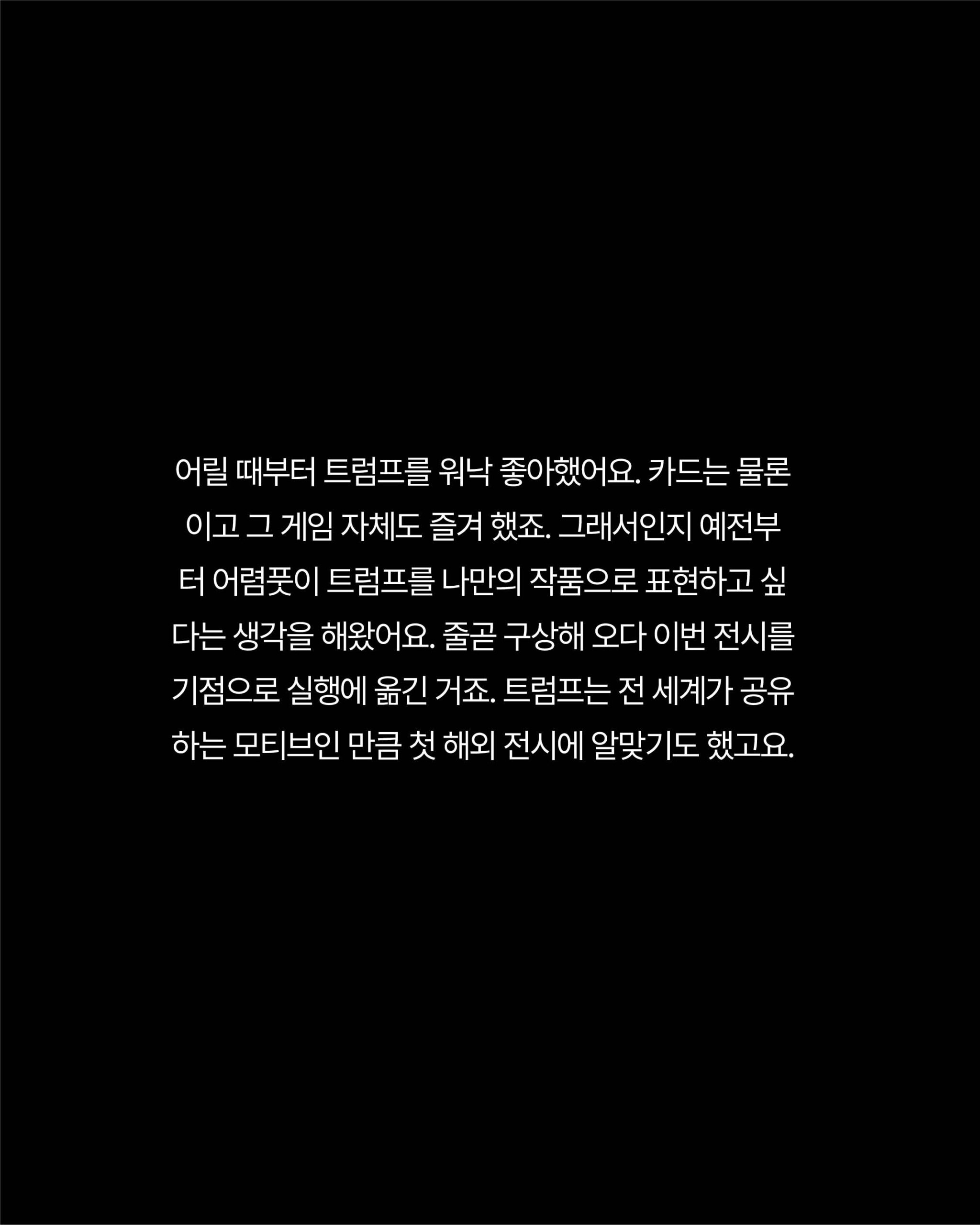 ‘Playing Cards’를 보고 작품이 주는 의미를 넘어, 작품 규모에서 많은 노력과 시간이 들었을 것 같다는 생각도 했어요.