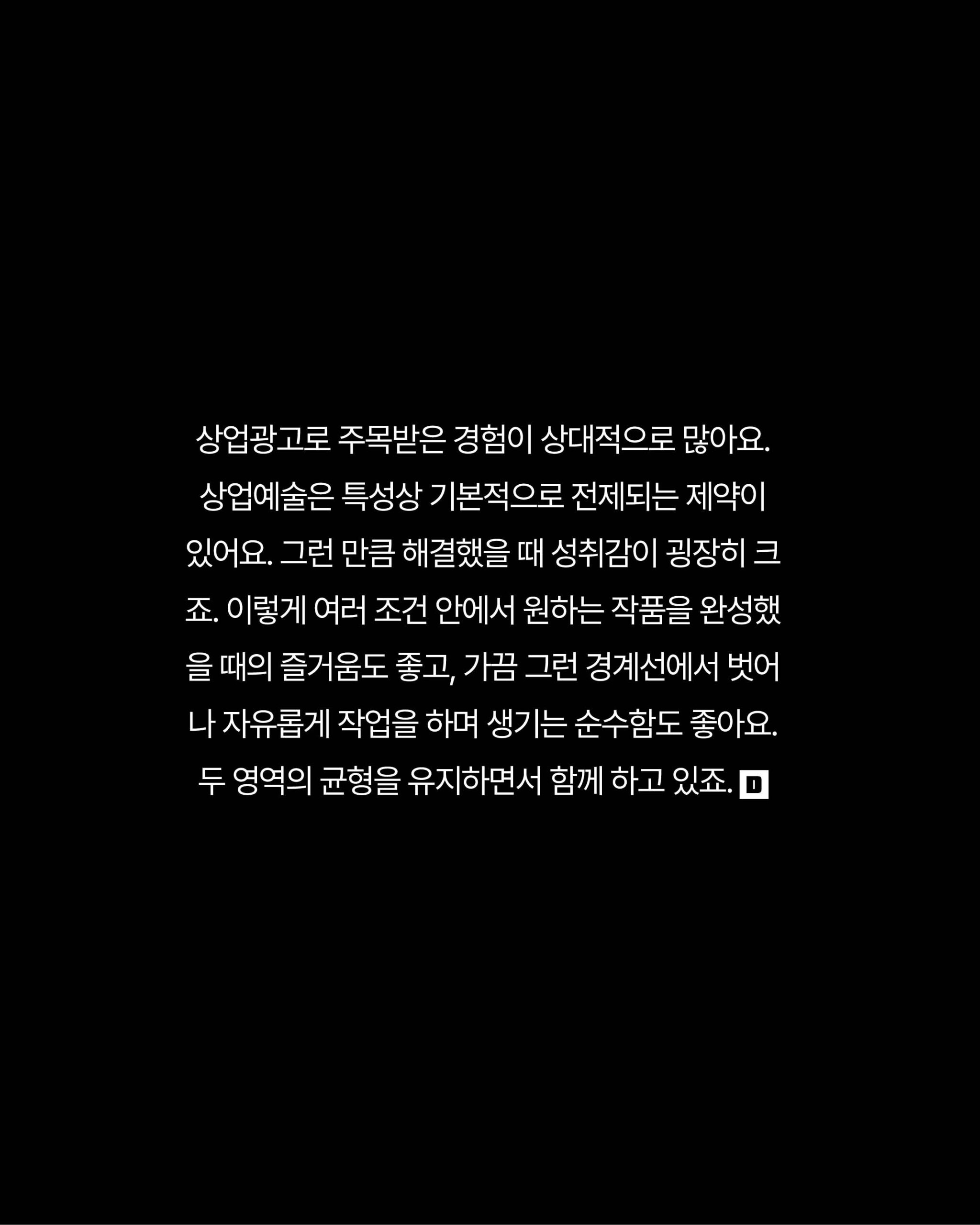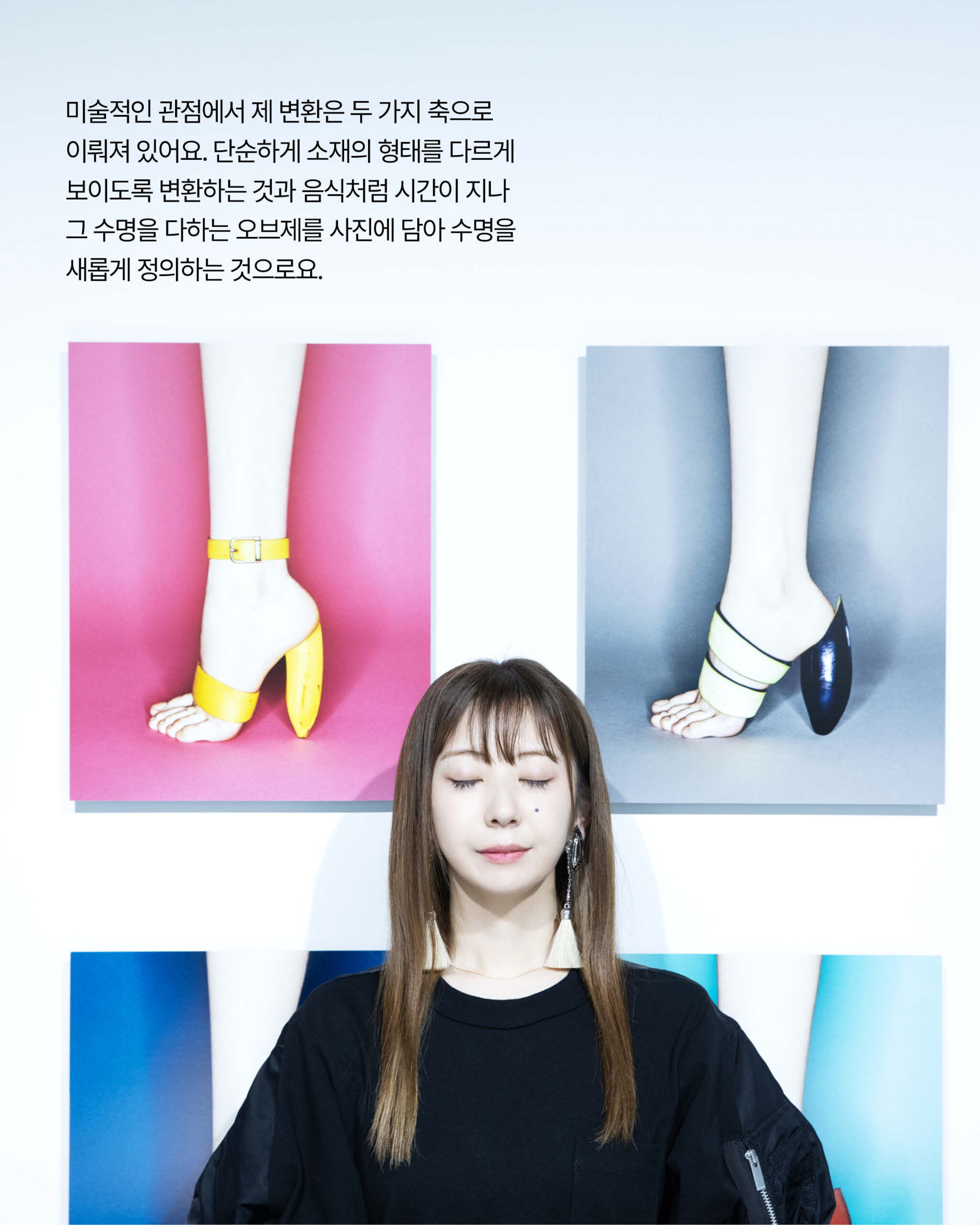 너무 다른 것처럼 보이지만 둘 다 ‘생명’이라는 중요한 공통점이 있어요. 살아 있다는 사실은 예상치 못한 많은 결과를 이끌어내곤 해요. 늘 촬영에 앞서 많은 것을 구상하지만 모델이 갑작스레 지은 표정과 과일마다 다른 색깔은 또 새로운 아이디어로 이어지죠.