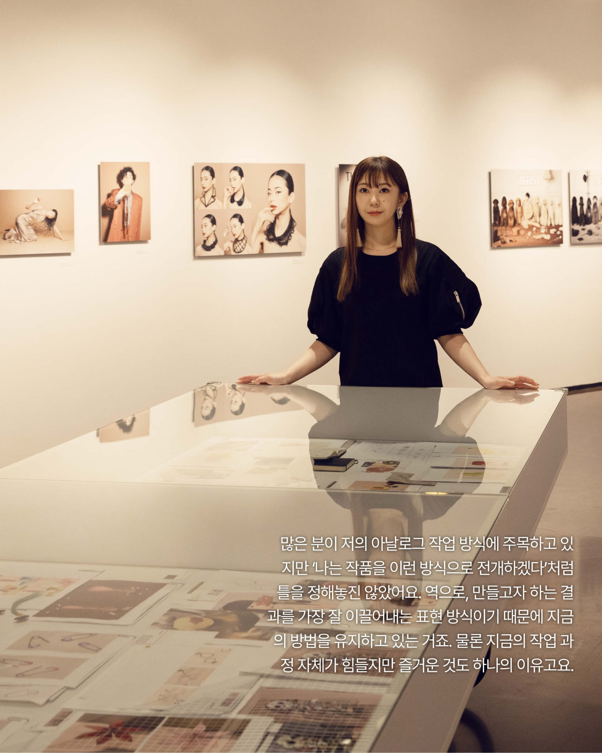 작업을 시작하기에 앞서 어느 정도 구성에 대한 밑그림은 머릿속에 있었어요. 전시가 결정되고 구현하기 시작했으니까 기간으로 따지면 3개월 정도 걸렸죠. 비교적 짧은 시간에 완성했지만 정말 온 집중을 다해 작업한 것 같아요.