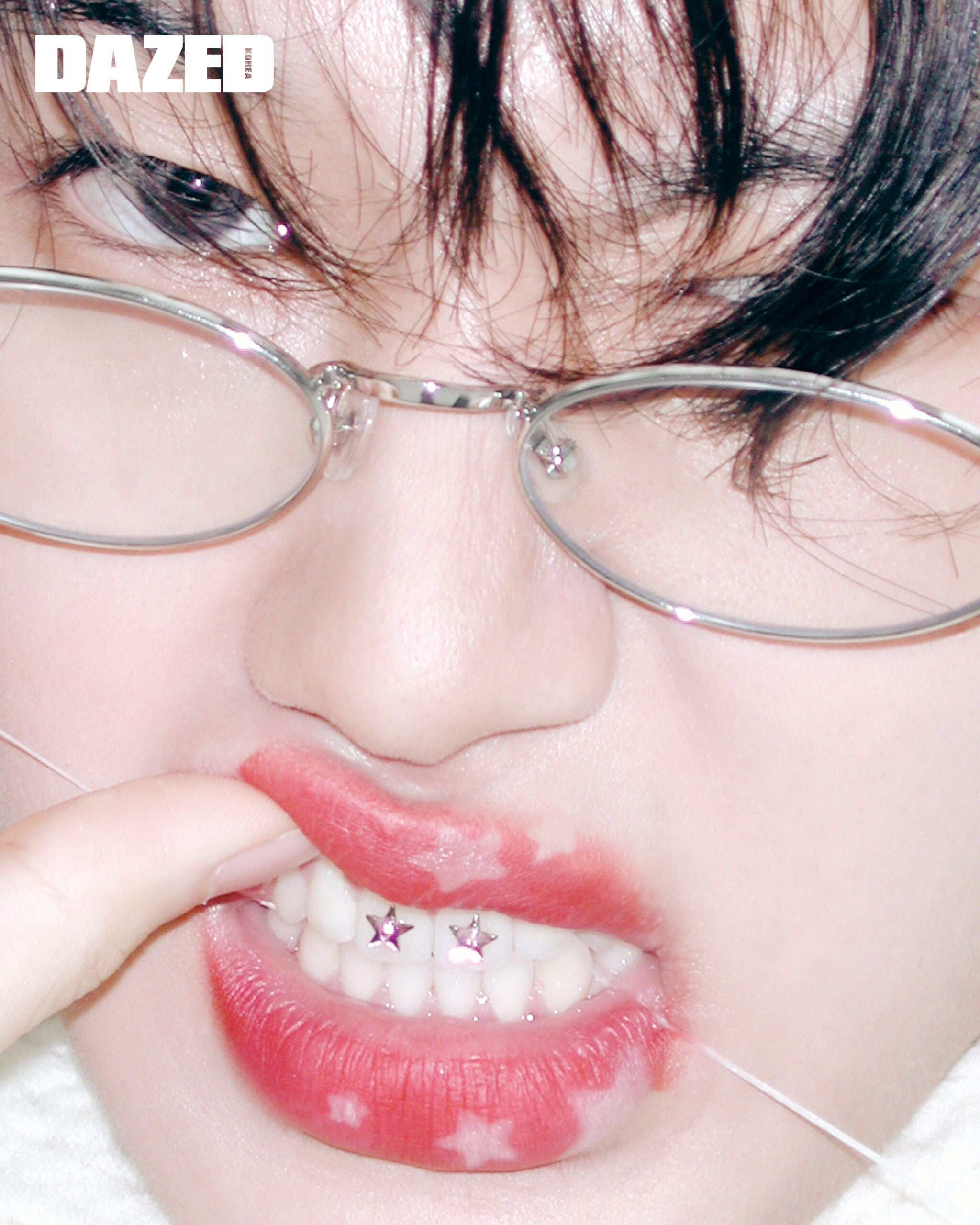 디자이너 리프트 파운데이션을 얼굴에 얇게 펴 발라 피부 톤을 자연스럽고 균일하게 커버하고 눈두덩엔 아르마니 네오 누드 멜팅 컬러 밤 51 피치 코랄을 눈가에 발라 자연스러운 생기를 표현한다. 입술에 별 모양 스티커를 붙인 후 아르마니 립 파워 마뜨 307 엑스타틱을 브러시로 얇게 바른다. 그 뒤 붙여놓은 스티커를 떼어내 별 모양 패턴 립을 완성한다.