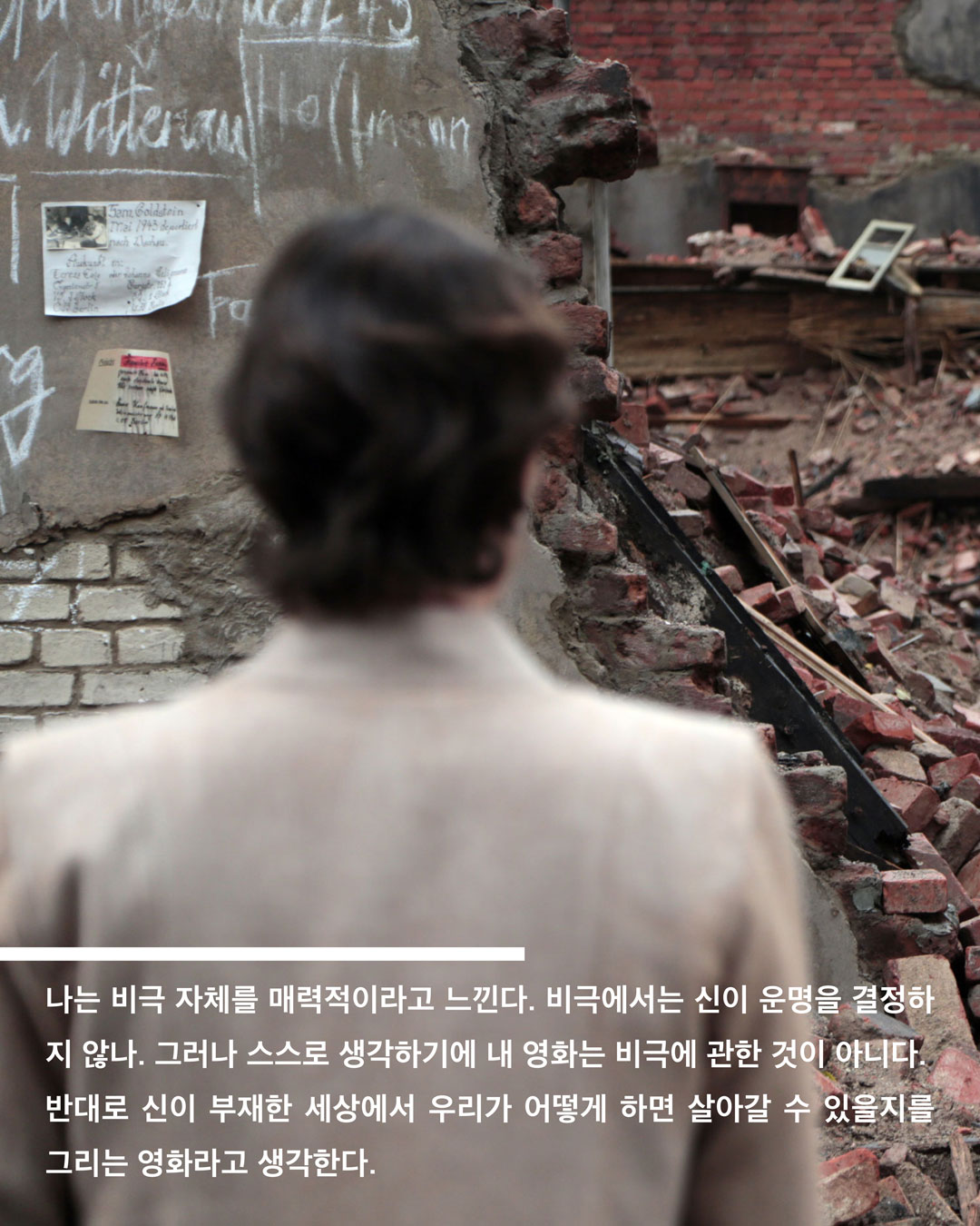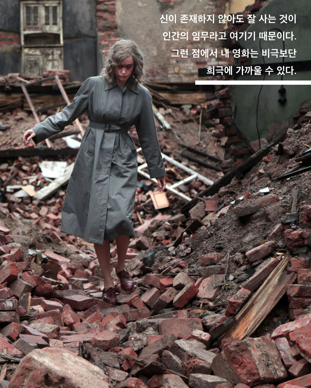 나는 비극 자체를 매력적으로 여긴다. 비극에서는 신이 운명을 결정하지 않나. 그러나 스스로 생각하기에 내 영화는 비극에 관한 영화는 아니다. 반대로 신이 부재한 세상에서 우리가 어떻게 하면 살아나갈 수 있을지를 그리는 영화라고 생각한다. 신이 존재하지 않아도 잘 사는 것이 인간의 임무라고 여기기 때문이다. 그런 점에서 내 영화는 비극보단 희극에 가까울 수 있다.