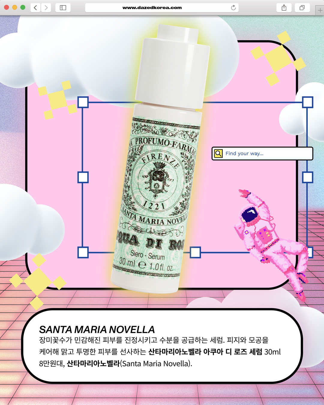 잘 쓰고 있던 스킨케어 라인에 건조함을 느껴 한 가지를 추가하고 싶다면 단연 세럼을 추천한다. 스킨과 로션만 바르던 중학생 시절, 우연히 친구의 추천으로 사게 된 세럼은 내 피부를 완전히 바꿔 줬고, 이후 세럼은 나의 뷰티 루틴에서 빼놓을 수 없는 필수 아이템이 되었다. 진정, 미백, 보습 등 각기 다른 기능에 특화된 세럼을 그날의 피부 상태에 따라 고를 수 있는 것도 매력 중 하나. 또 물처럼 흐르는 제형의 세럼은 베이스 메이크업 시 밀릴 걱정도 없으니 무턱대고 크림을 바꾸기보단 세럼 한두 개를 스킨케어 라인에 추가해 보는 것이 어떨까.