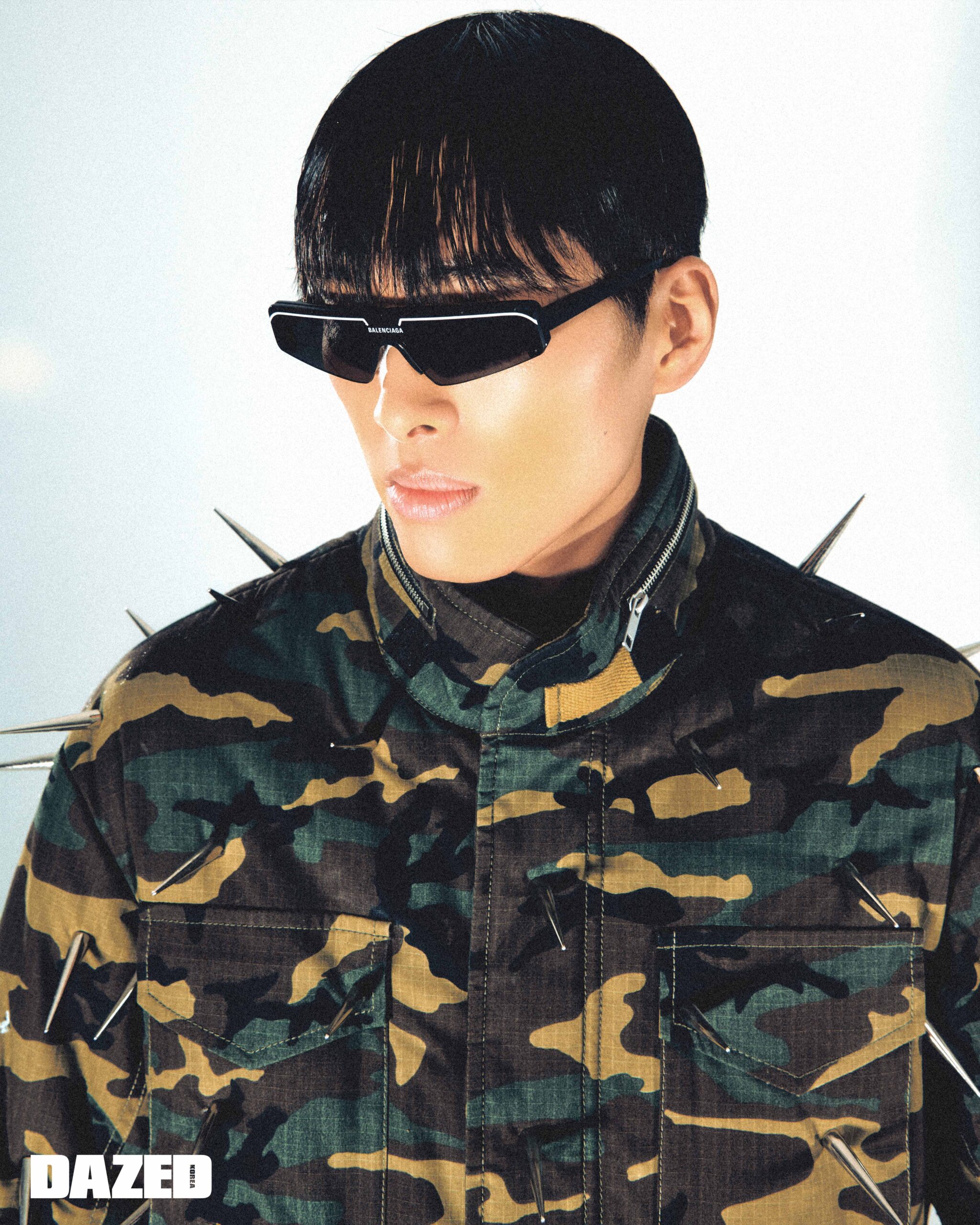 밀리터리 재킷은 산쿠안즈(Sankuanz), 선글라스는 스타일리스트의 .