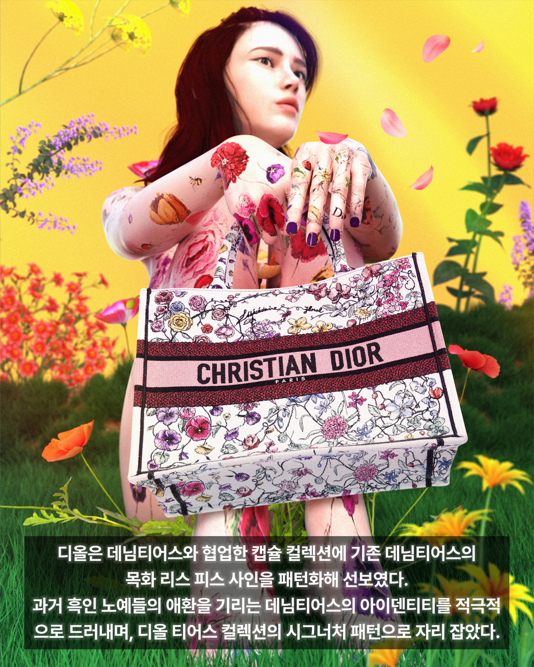 화려한 자수가 특징인 화이트 멀티컬러 북 토트백은 디올(Dior).