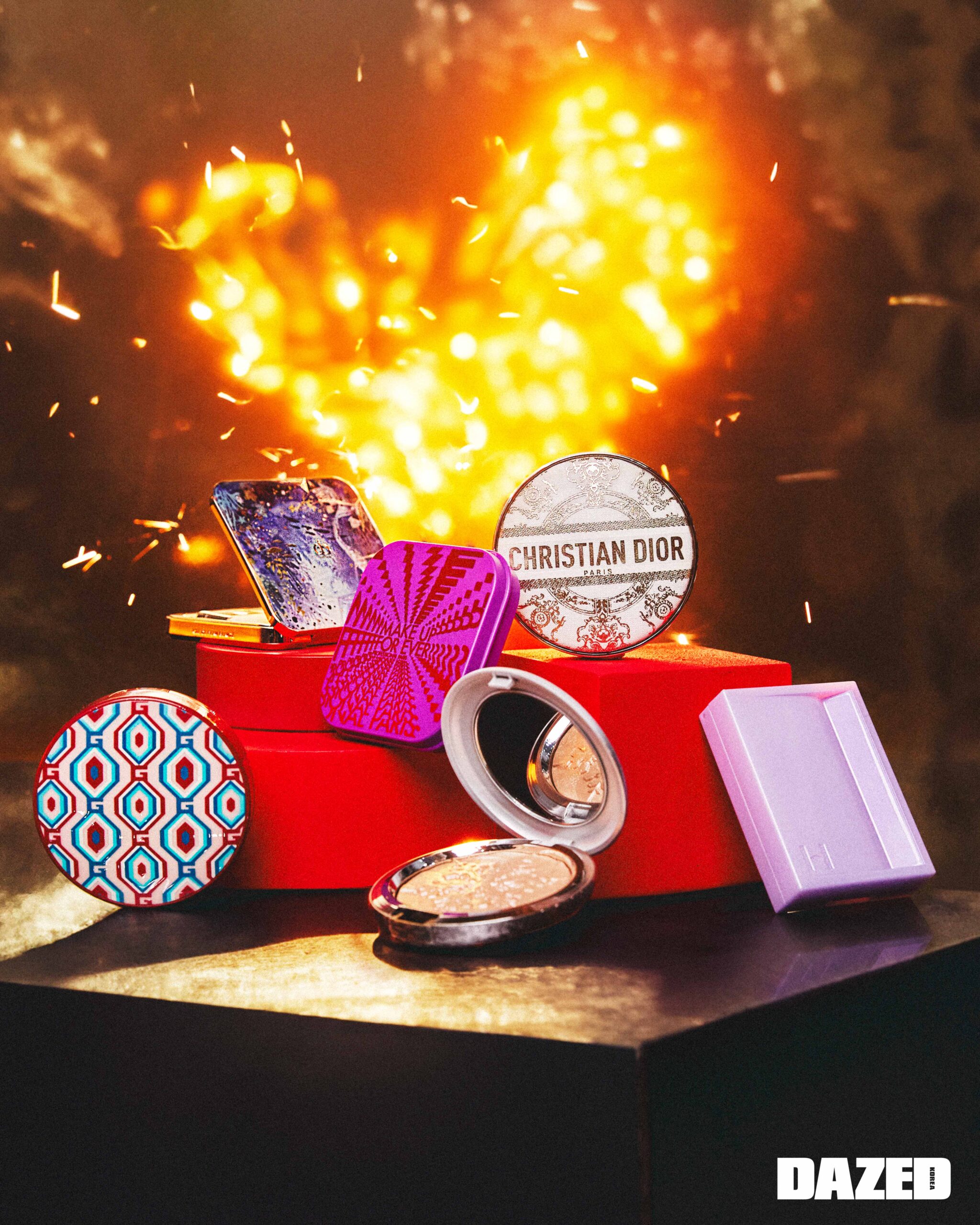 모공과 요철을 자연스럽게 메워 피붓결을 매끄럽고 균일하게 만들어주는 프레스트 파우더로, 홀리데이의 생동감을 표현한 더 바이브런트 컬렉션 패키지가 돋보이는 UHD 프레스드 파우더 홀리데이 에디션 6.2g 5만4000원대, 메이크업포에버(Make Up For Ever).