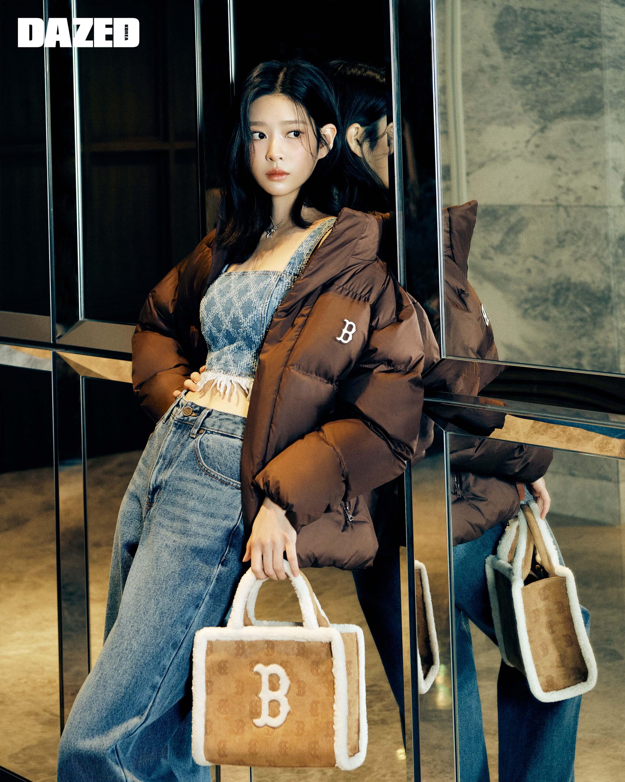 고급스러운 올드머니 룩을 완성시켜주는 베이직 숏패딩 보스턴레드삭스, 클래식 모노그램 무스탕 스몰 토트백 보스턴레드삭스 모두 MLB.