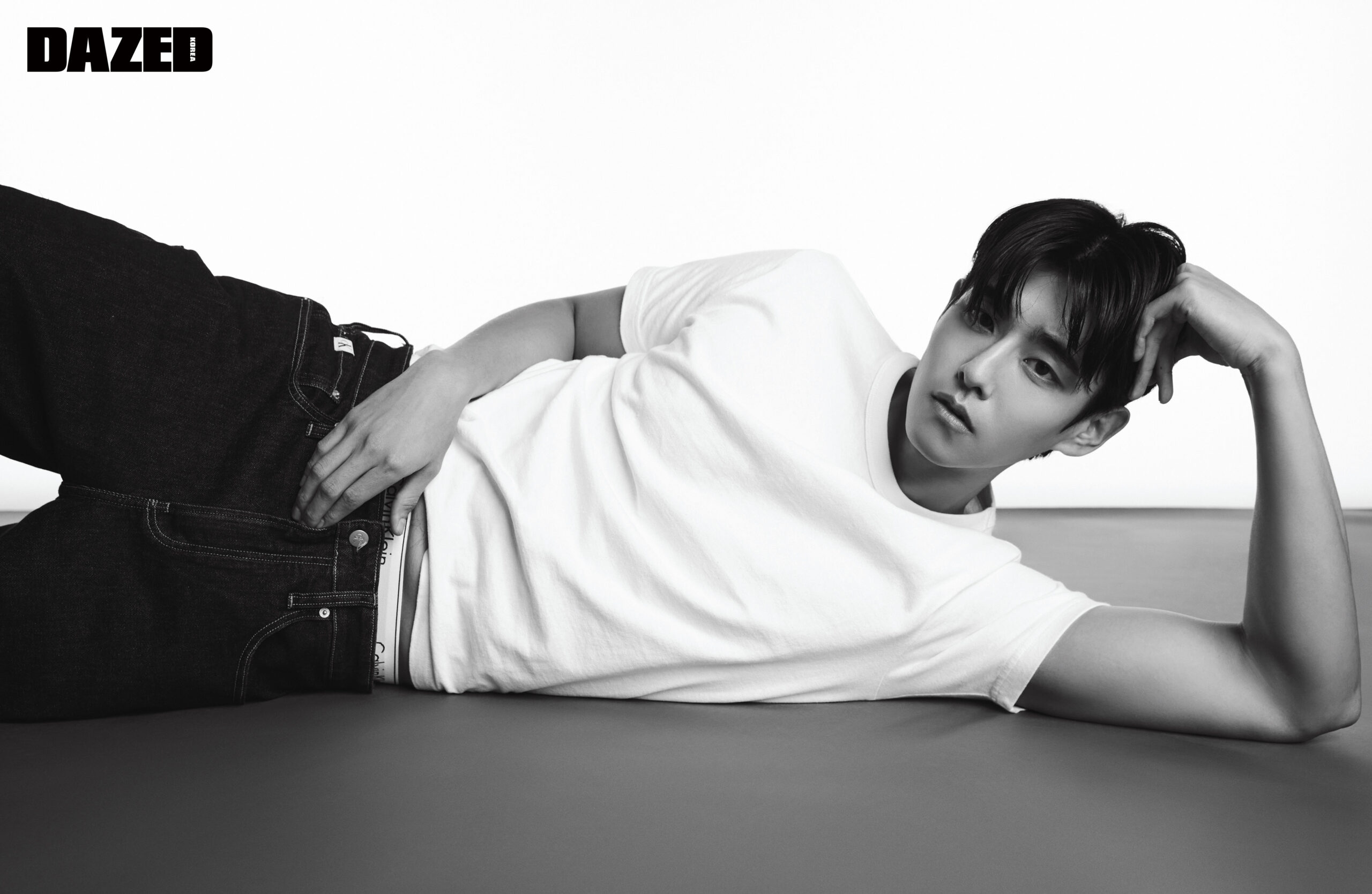 원익이 입은 데님 팬츠는 캘빈클라인 진(Calvin Klein Jeans), 트렁크는 캘빈클라인 언더웨어(Calvin Klein Underwear),