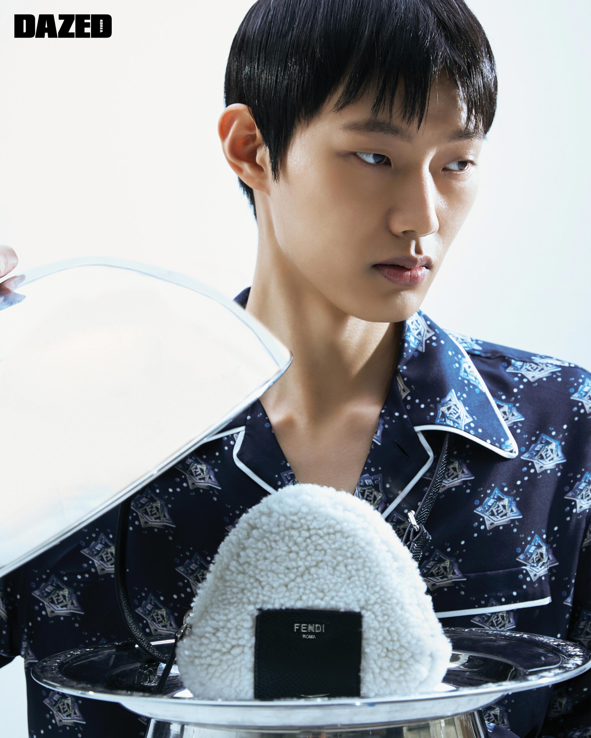 프린트 실크 셔츠와 미니 백으로 연출 가능한 오니기리 참은 펜디(Fendi).