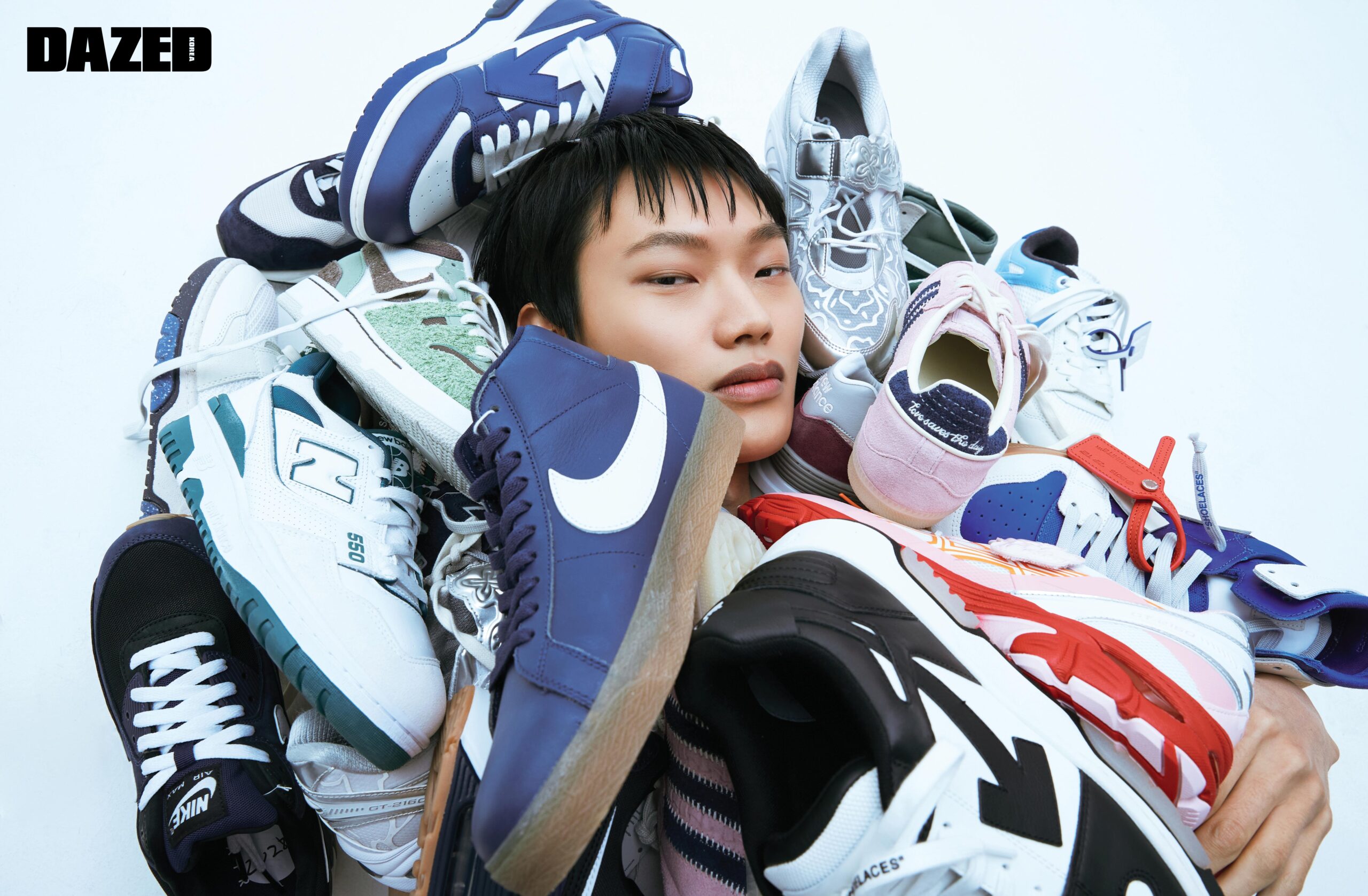 독특한 소재의 그린과 브라운 미드 톱 스니커즈와 러버솔이 특징인 네이비 미드 톱 스니커즈는 나이키(Nike), 레트로 무드 그린 스니커즈와 네이비 그레이 스니커즈, 버건디 스니커즈, 카키 미드 톱 스니커즈는 모두 뉴발란스(New Balance), 시그너처 로고가 특징인 네이비 미드 톱 스니커즈와 화이트 레더 태그가 특징인 스카이 블루 포인트 스니커즈, 오렌지 컬러 레더 태그가 특징인 블루 미드 톱 스니커즈, 블랙 로톱 스니커즈는 모두 오프화이트(Off-White™), 플라워 프린트와 프린트 패치가 특징인 실버 스니커즈와 플라워 패치가 특징인 핑크와 레드 스니커즈는 아식스 스포츠스타일 × 세실리에 반센(ASICS SportStyle × Cecilie Bahnsen), 러버솔과 사이드 스티치가 특징인 핑크와 네이비 스니커즈는 아디다스 오리지널스 × 노타이틀(adidas Originals × notitle).