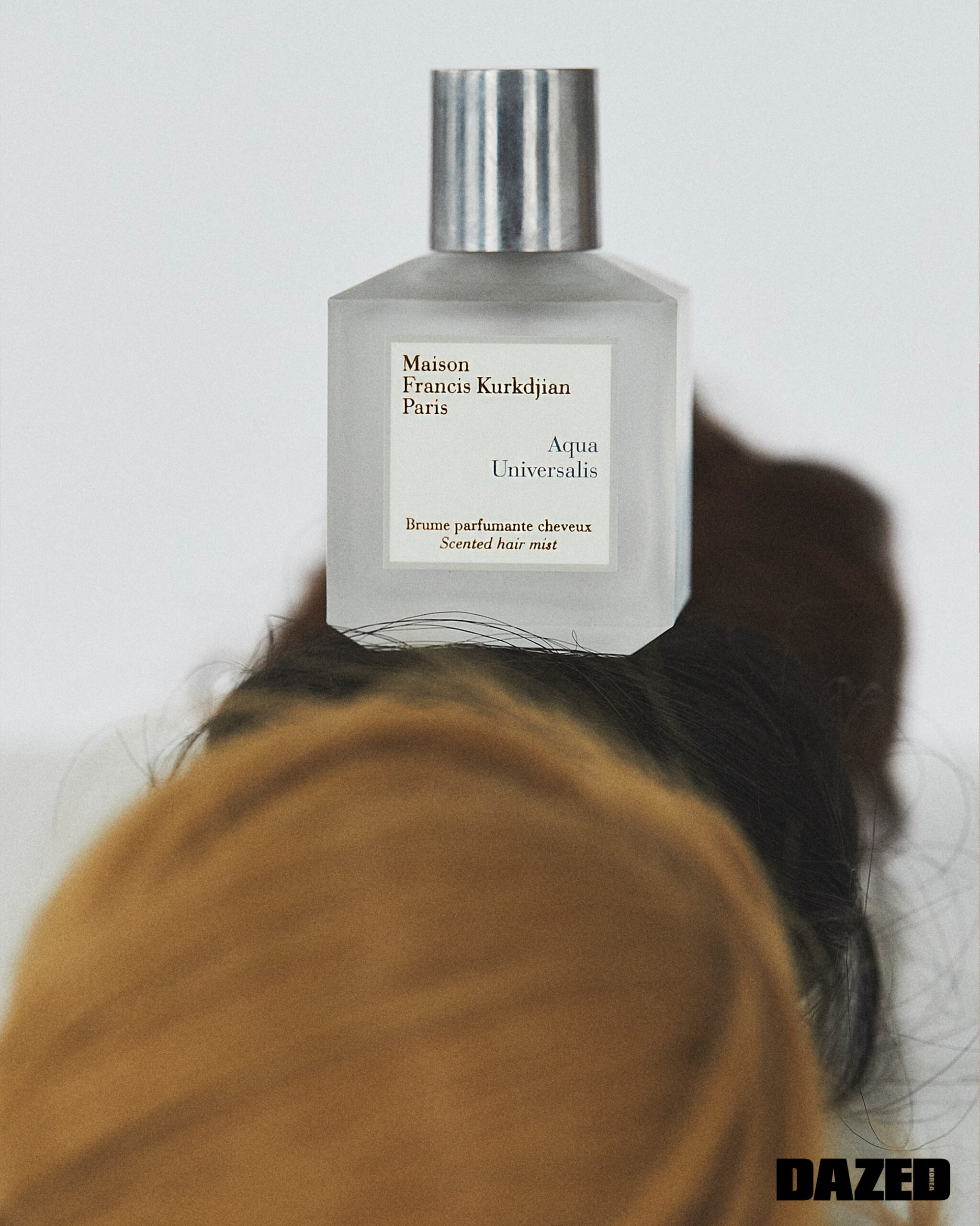 모발을 건강하게 케어해 주는 피마자 오일이 함유된 헤어 미스트. 베르가모트와 유자, 화이트 플라워, 머스크 우디 향을 조합해 깔끔하고 상쾌한 시트러스 향을 완성한 센티드 헤어 미스트 아쿠아 유니버셜 70ml 11만3000원대, 메종 프란시스 커정(Masion Francis Kurkdjian).