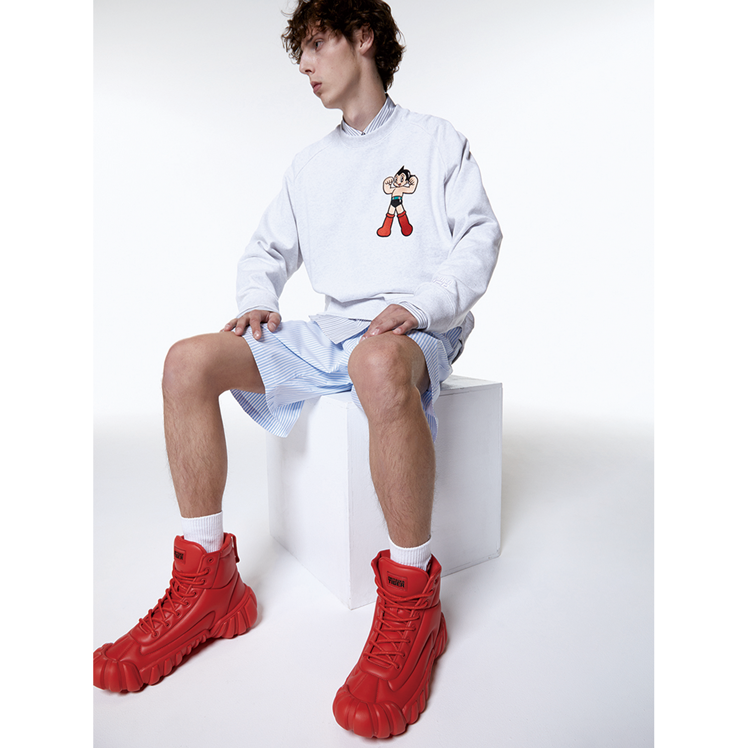 라인업은 셔츠와 보머 재킷, 스커트, 팬츠, 보디백, 버킷햇, MEXICO 66 SD, DENTIGRE 퍼프 부츠 등을 포함한 47가지 아이템으로 구성되어 있다. 오리지널 로고와 “우주소년 아톰” 일러스트가 담긴 아이템은 이번 협업을 위해 특별히 제작되었다. 레드 컬러의 슈즈는 아톰의 빨간 부츠를 떠오르게 만들며, 오니츠카타이거가 선사하는 재치를 느껴볼 수 있다.