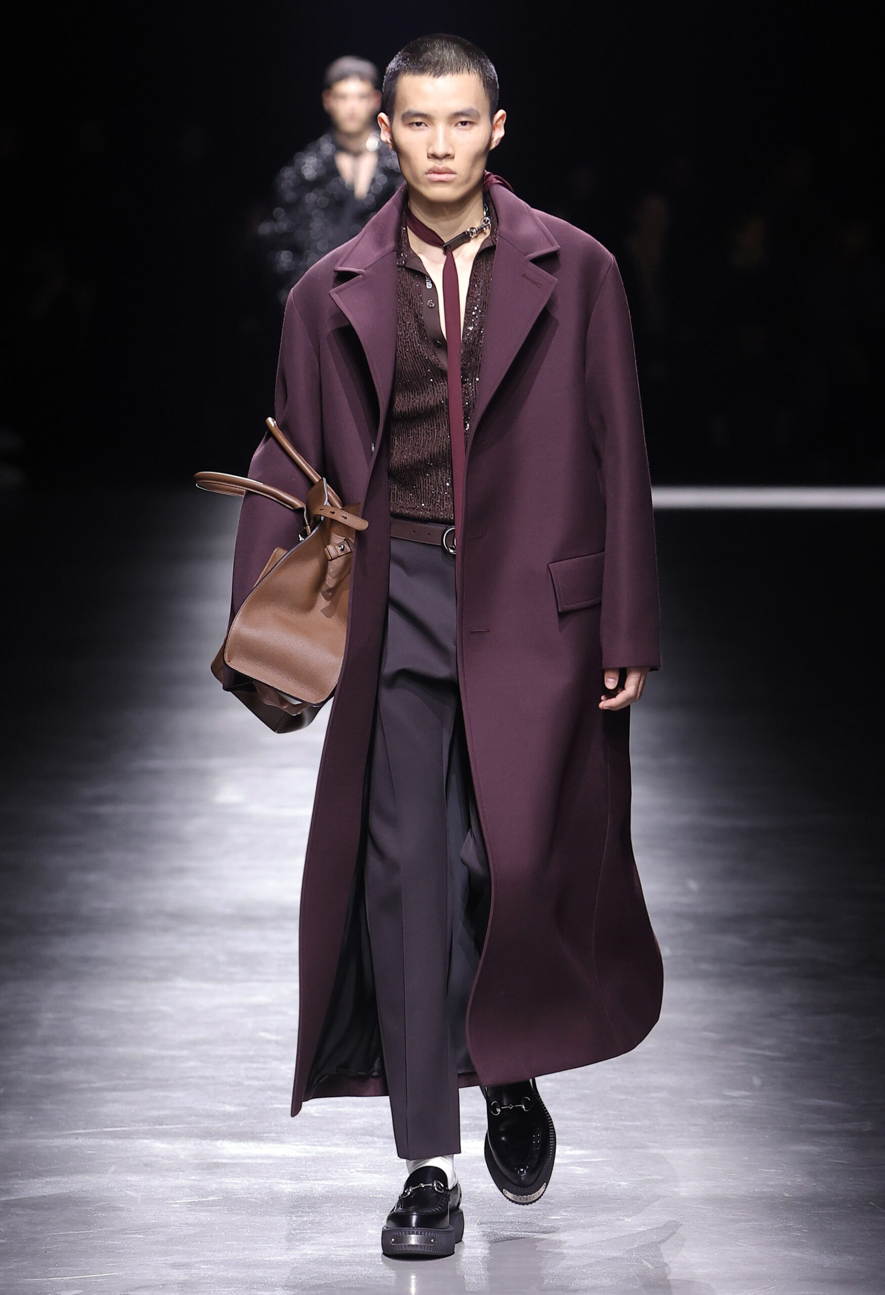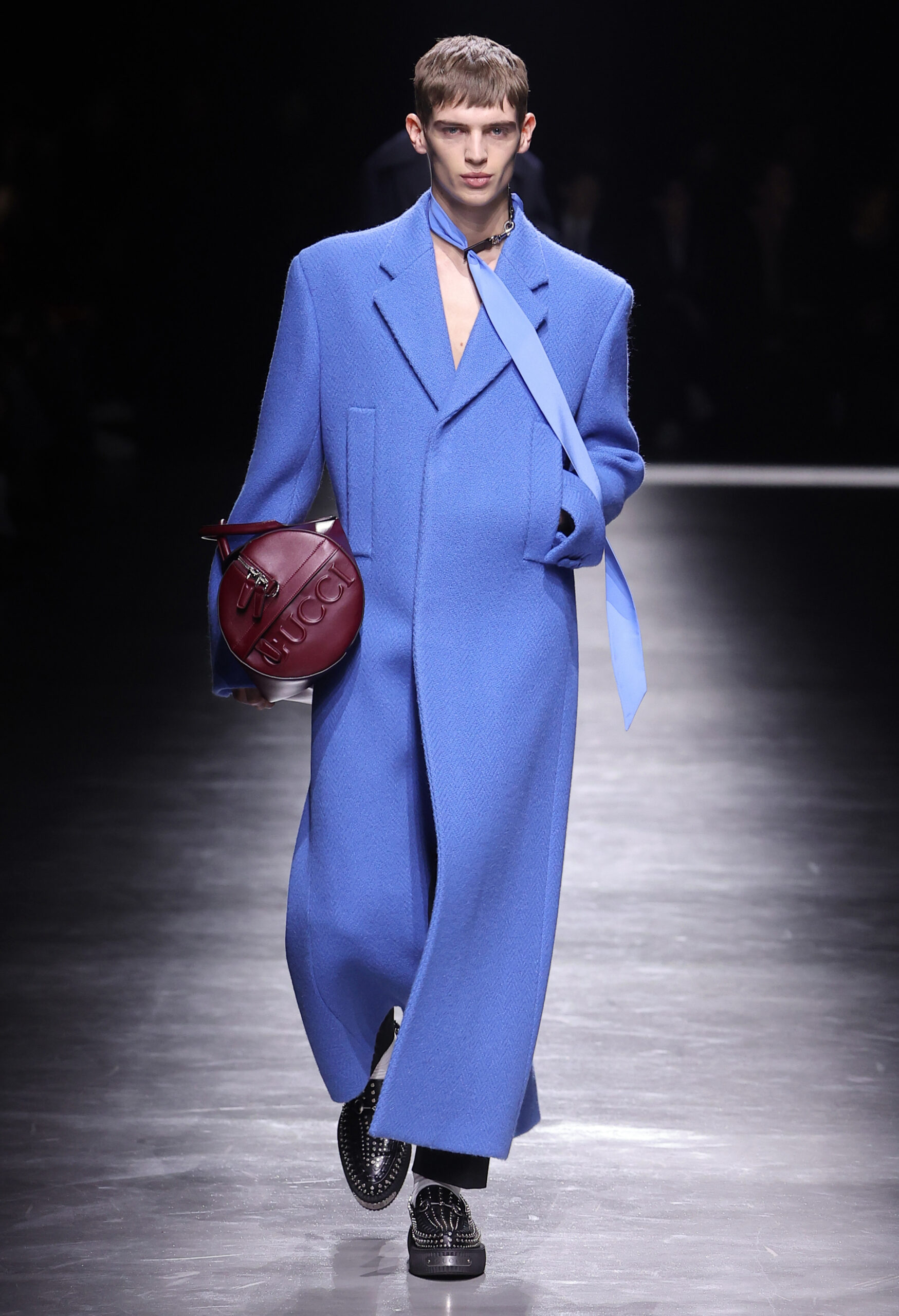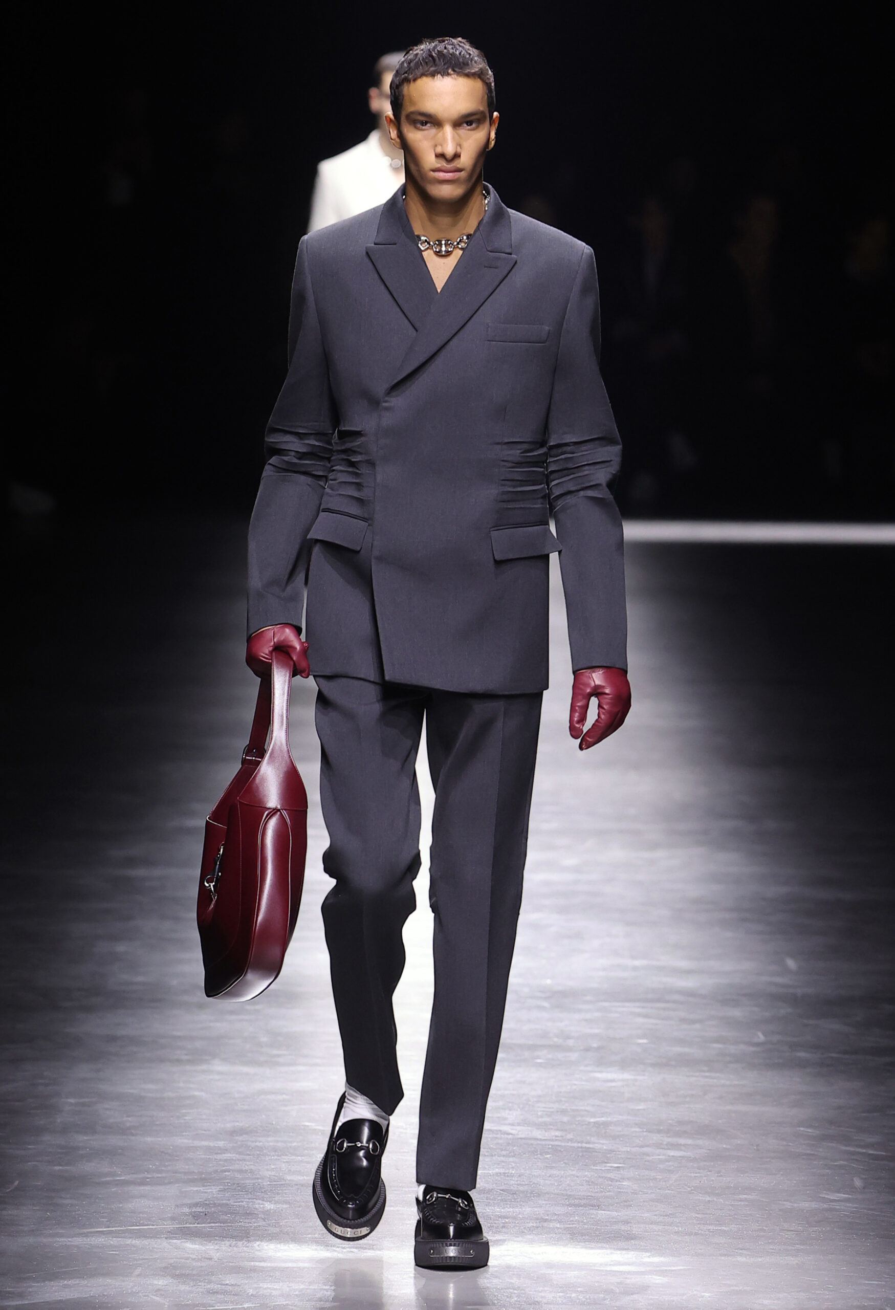 크리에이티브 디렉터 사바토 데 사르노Sabato De Sarno가 처음 선보이는 구찌 2024년 F/W 남성컬렉션은 밀라노 폰데리아 카를로 마키Fonderia Carlo Macchi에서 공개됐다. 이번 컬렉션은 2023년 9월 선보인 고급스러운 소재와 정제된 실루엣을 바탕으로 구찌 2024년 여성 S/S, 구찌 앙코라 패션쇼의 미러링으로 진행됐다. 이번에는 남성복의 정제된 테일러링을 통해 사바토의 비전을 선보인 것이다.