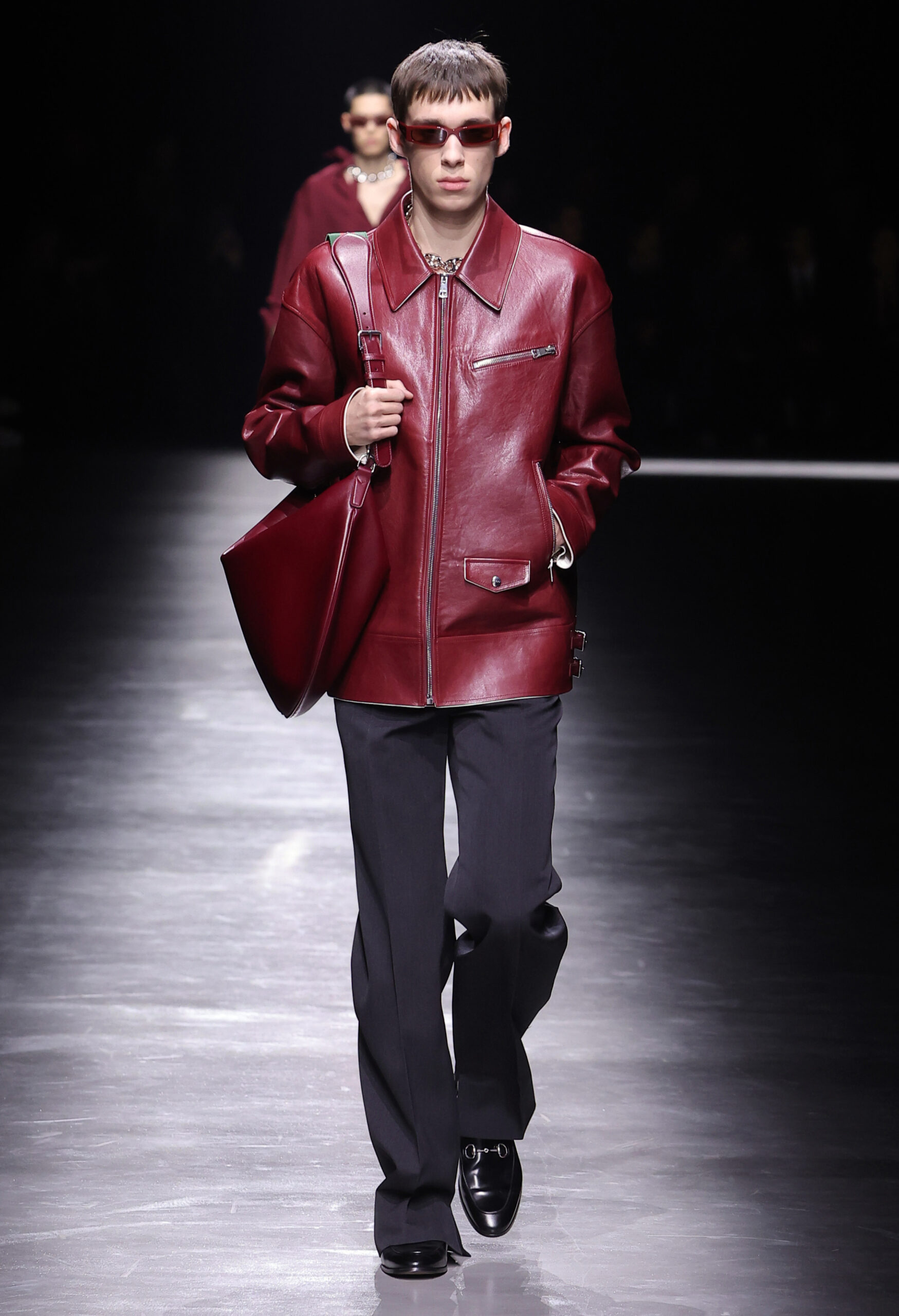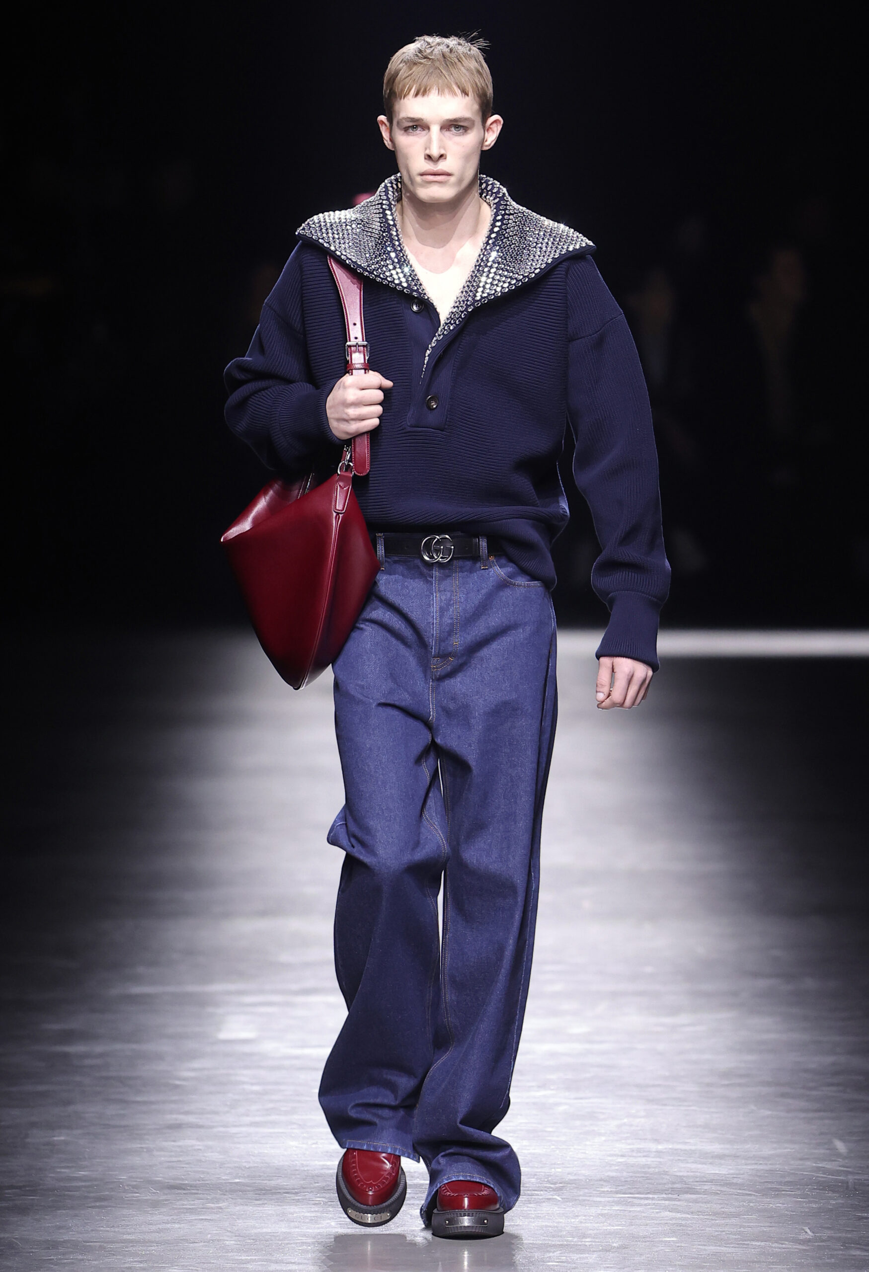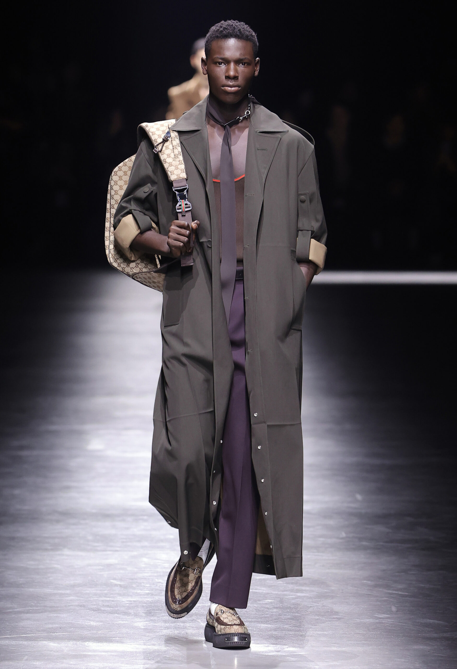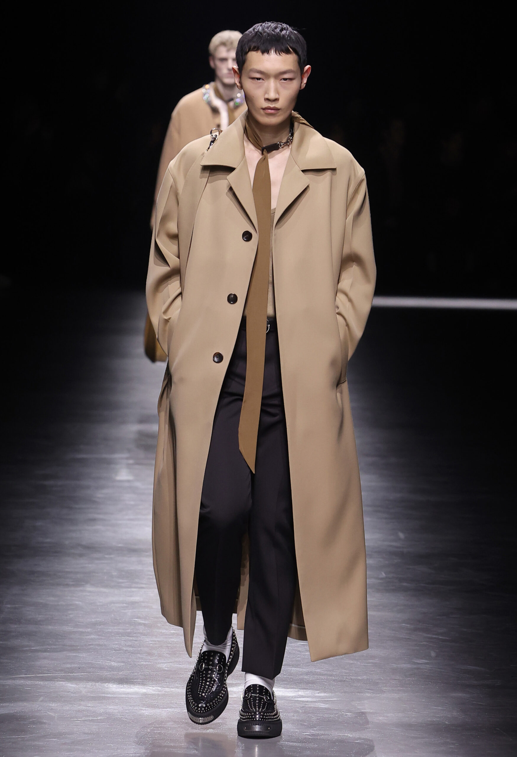 크리에이티브 디렉터 사바토 데 사르노Sabato De Sarno가 처음 선보이는 구찌 2024년 F/W 남성컬렉션은 밀라노 폰데리아 카를로 마키Fonderia Carlo Macchi에서 공개됐다. 이번 컬렉션은 2023년 9월 선보인 고급스러운 소재와 정제된 실루엣을 바탕으로 구찌 2024년 여성 S/S, 구찌 앙코라 패션쇼의 미러링으로 진행됐다. 이번에는 남성복의 정제된 테일러링을 통해 사바토의 비전을 선보인 것이다.