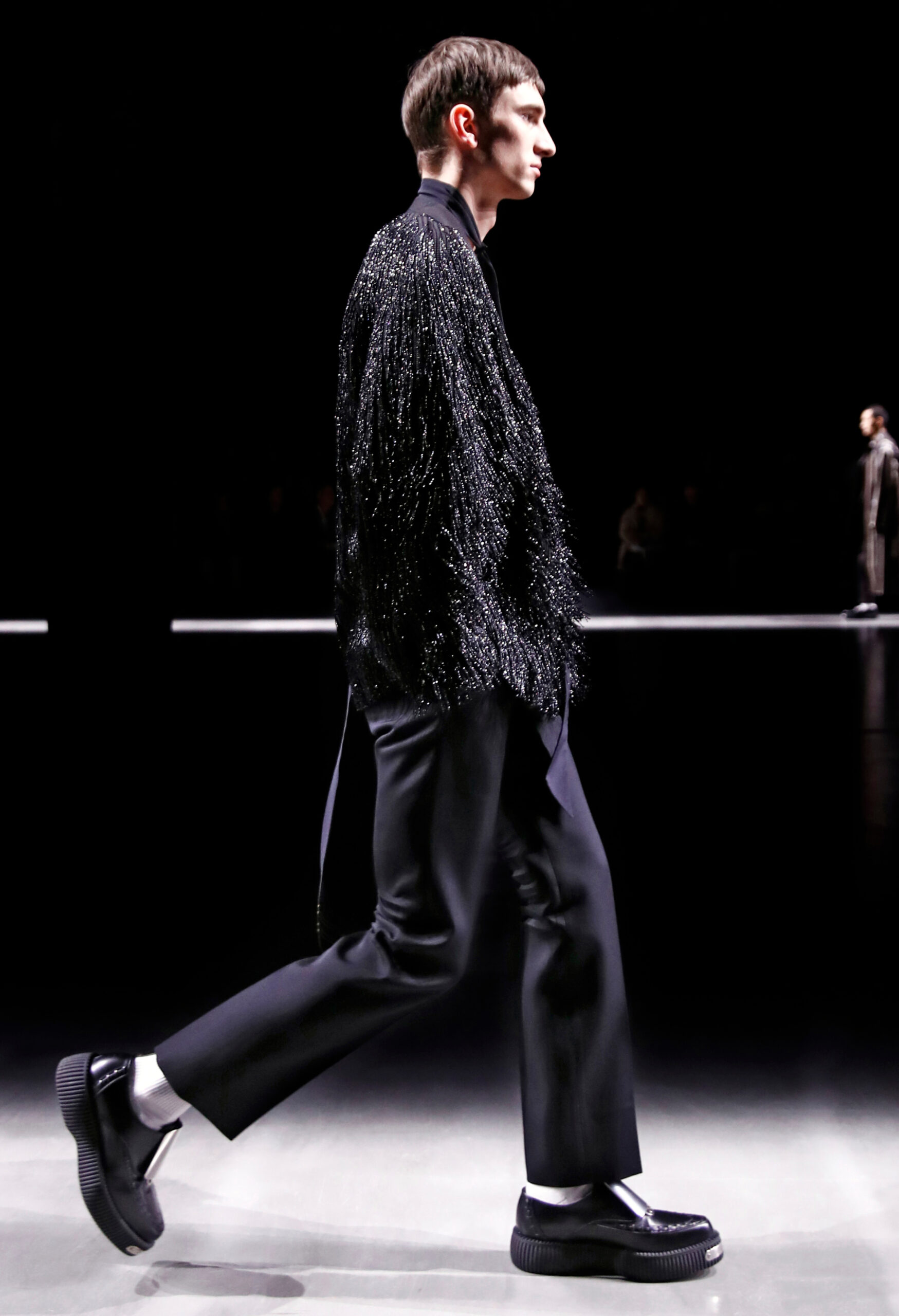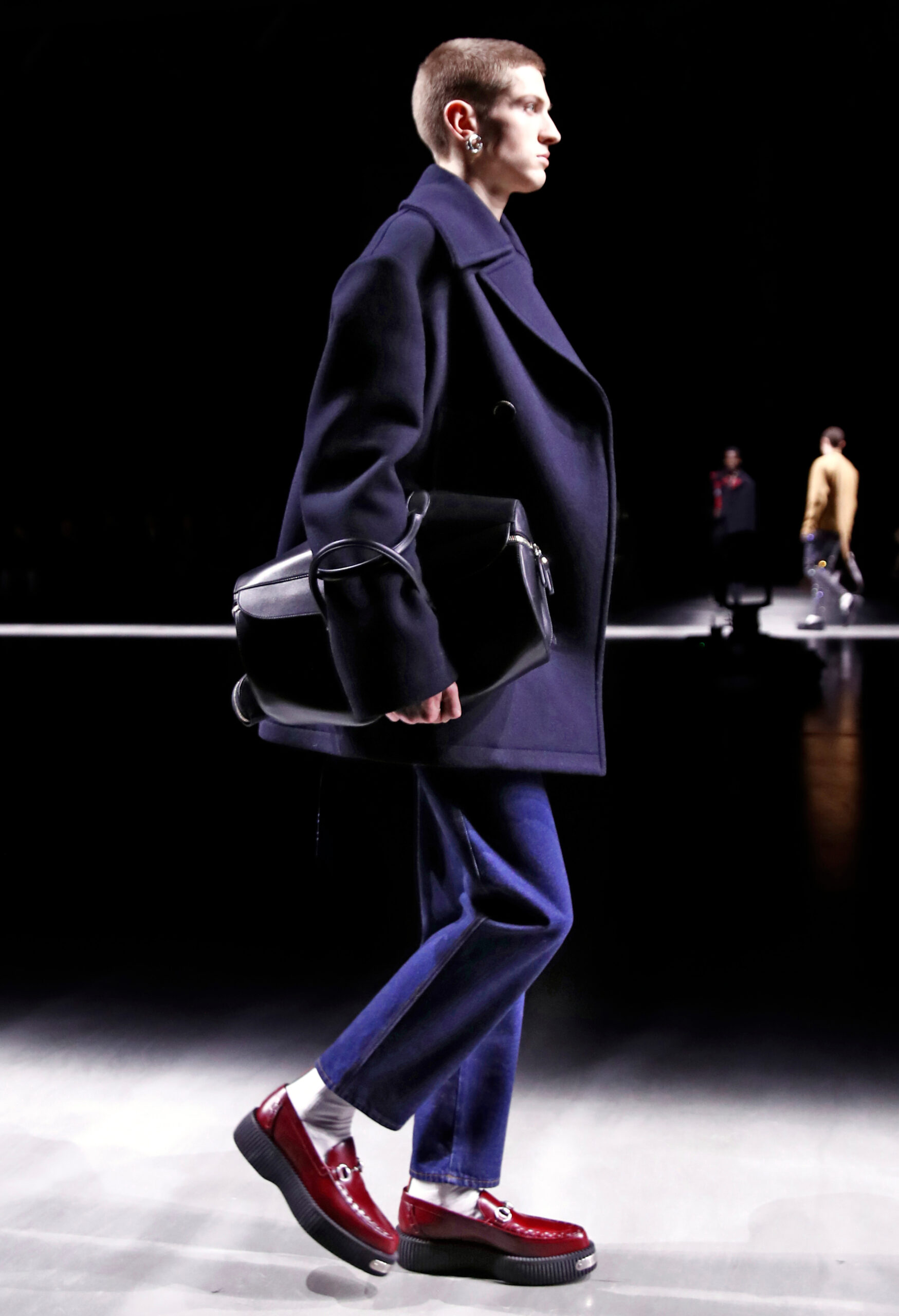 구찌 2024년 F/W 남성 컬렉션은 남성복의 정제된 테일러링과 GG 모노그램, 구찌 홀스빗 로퍼 등 새롭게 재해석한 하우스의 상징을 통해 다양한 디자인을 구현했다. 고급스러운 소재와 정제된 실루엣을 바탕으로 한 관능적 우아미가 엿보였는데, 이는 사바토 데 사르노가 2024년 S/S 컬렉션을 통해 선보인 것과 일맥상통한다. 더블브레스트 재킷을 중심으로 몸에 딱 맞는 실루엣의 발목 길이 트라우저, 더 편안한 핏의 사이드 슬릭 디테일 트라우저 등 두 가지 실루엣이 등장한 것. 프런트 파이핑과 백 파이핑 디테일 재킷으로 포멀 웨어의 정석을 보여줬다.