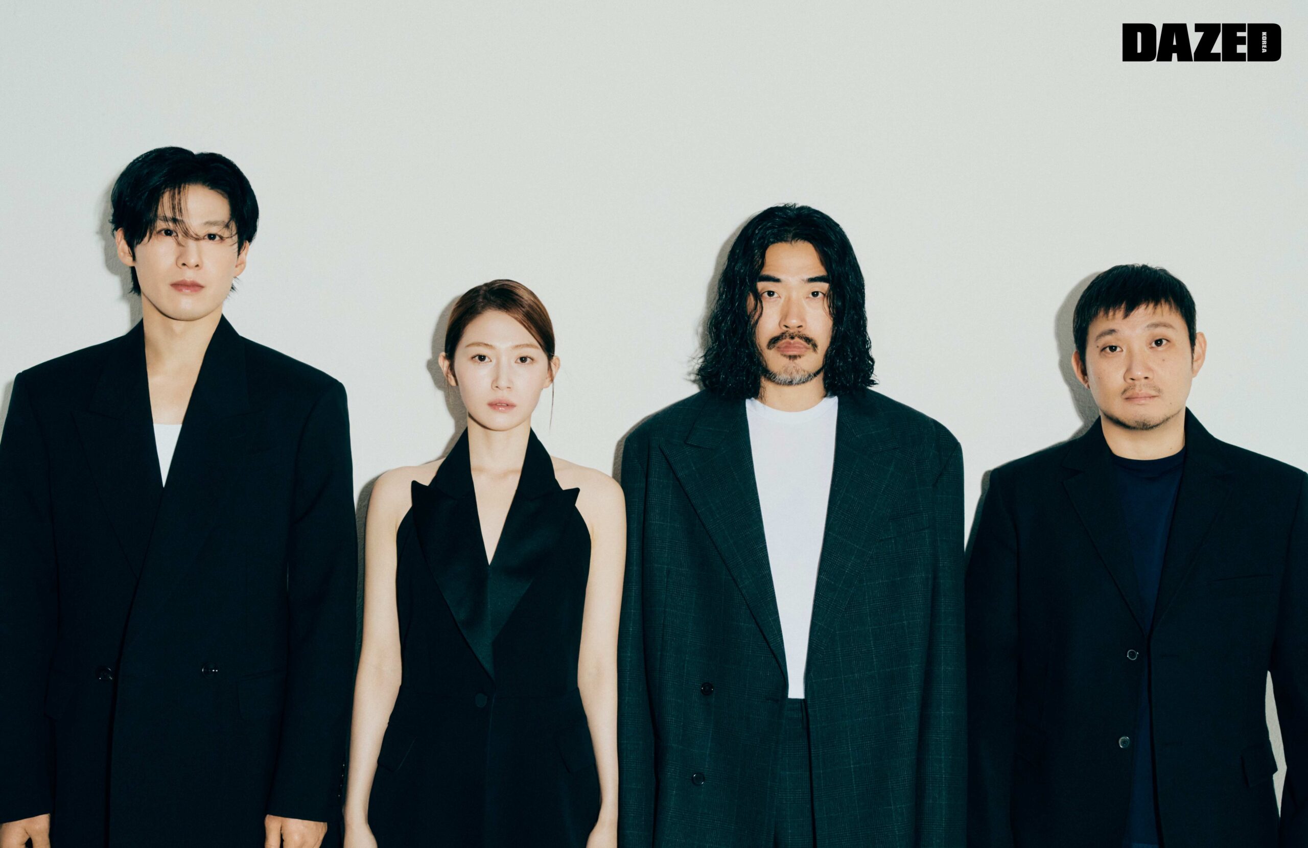 하마구치 류스케가 입은 싱글브레스트 재킷은 자크뮈스(Jacquemus), 톱은 하마구치 류스케의 것. 유림이 입은 홀터넥 베스트와 재킷은 막스마라(Max Mara). 휘태가 입은 더블브레스트 테일러드 코트는 알렉산더 맥퀸(Alexander McQueen). 대연이 입은 재킷과 팬츠는 아크네 스튜디오 by 미스터포터(Acne Studios by Mr Porter), 톱은 에디터의 것.