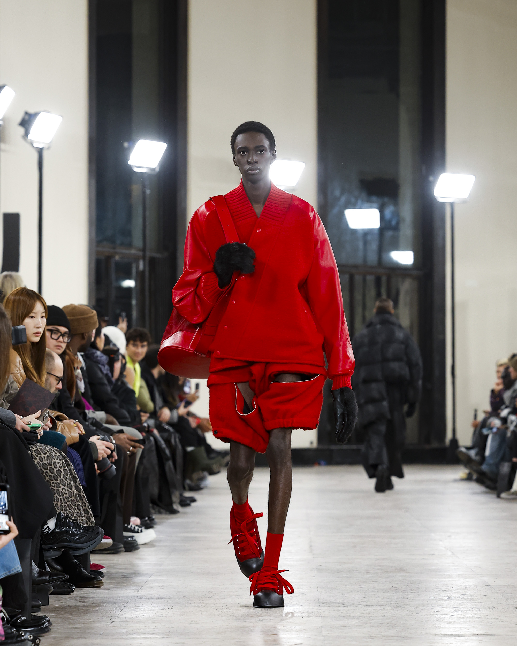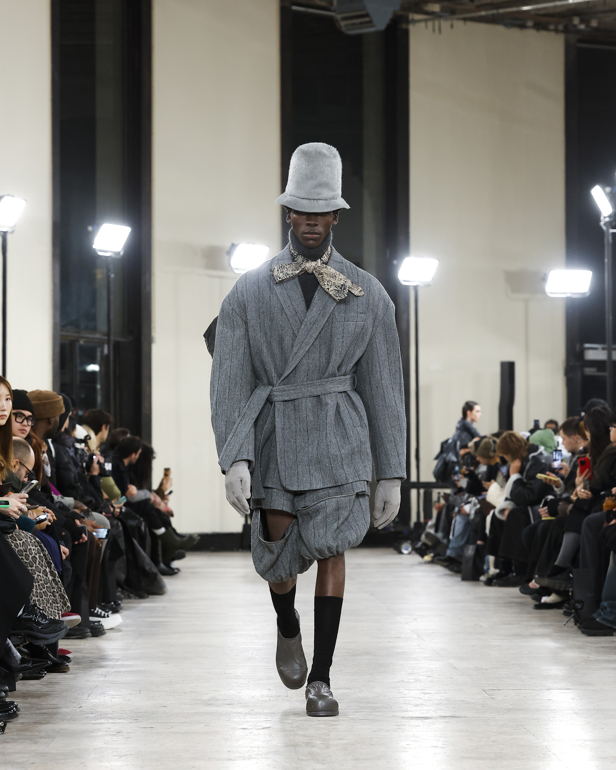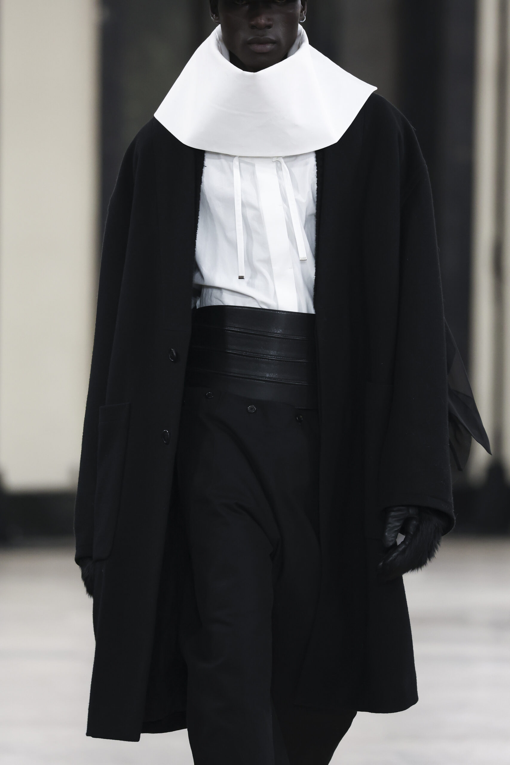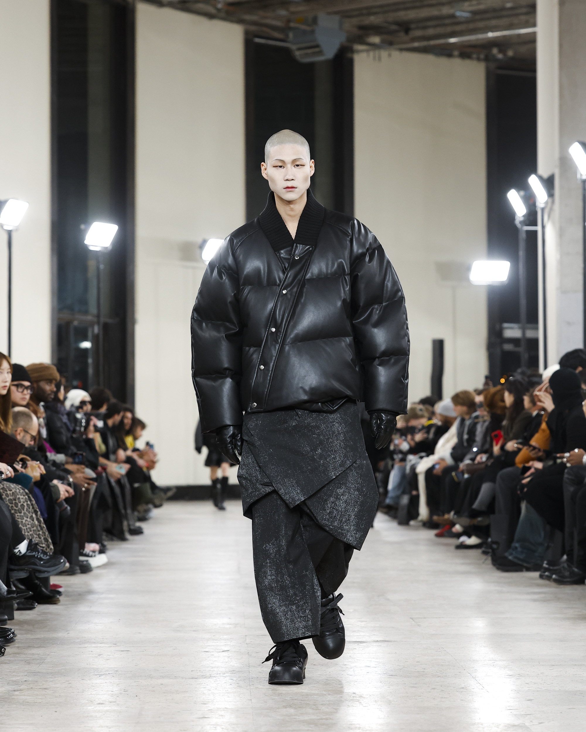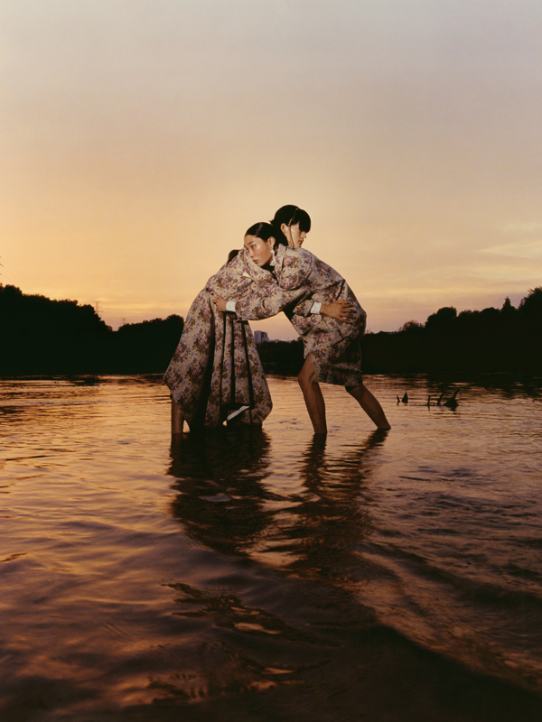 유난히 바람이 거세게 불던 19일 파리의 밤, 송지오는 팔레 드 도쿄에서 2024년 F/W 컬렉션을 선보였다. 컬렉션 테마는 송지오의 안티 히어로인 밤의 도둑들을 그려낸 ‘NIGHT THIEVES’. 이번 컬렉션은 프로메테우스를 묘사하는 그림에서 시작되었다. 인간에게 불을 내어준 죄로 천벌을 받은 프로메테우스처럼, 반영웅적인 캐릭터를 송지오만의 동양적인 실루엣과 곡선을 활용한 우아한 실루엣으로 입체적으로 묘사했다. 그리고 울, 실크, 테크니컬 코튼, 오간자 등 다양한 소재를 활용해 전위적인 실루엣을 구현했다. 송지오의 아방가르드한 디자인과 리복의 역동적인 에너지가 결합해 탄생한 슈즈는 컬렉션의 완성도를 높였다. 쇼가 끝나고 더욱 캄캄해진 밤, 호텔로 돌아가는 걸음에 남은 송지오라는 여운이 남았다. 밤의 도둑이 된 것만 같은 낯설고 흥분되는 기분.