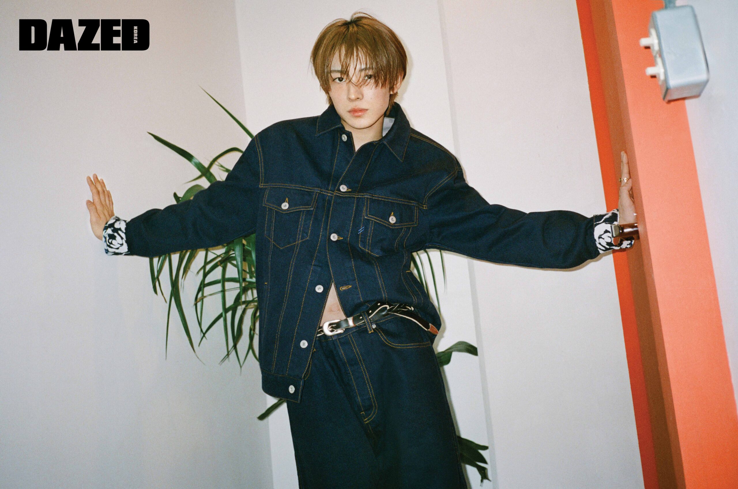 데님 재킷과 팬츠 셋업은 버버리(Burberry), 벨트는 아워레가시(Our Legacy), 링은 스타일리스트의 것.