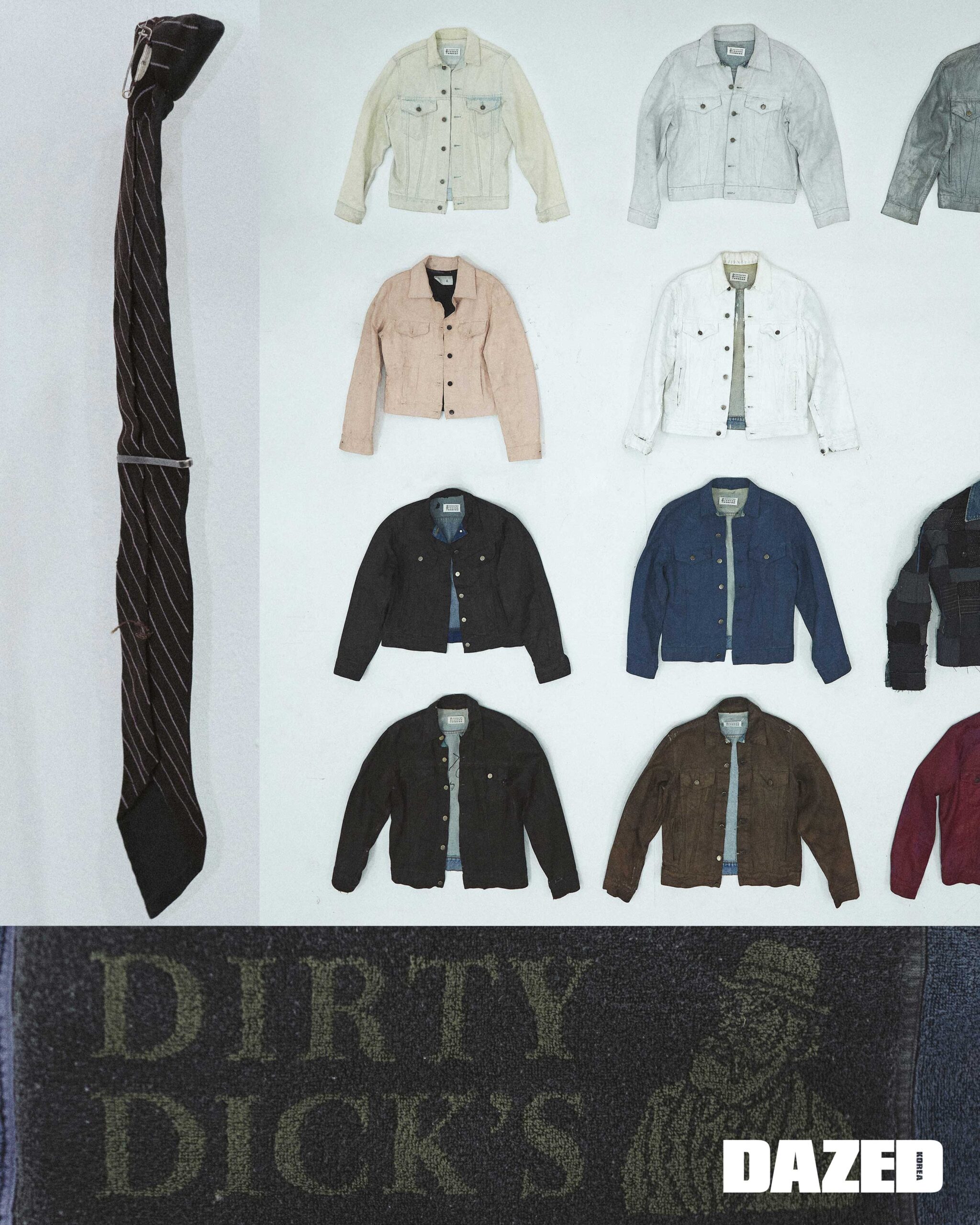 2002년 봄/여름 컬렉션의 아티즈널 페인트 핀 타이를 보면 마르탱 마르지엘라를 단번에 이해할 수 있어요. 빈티지 타이를 해체하고 핀으로 꿰 맸죠. 위로 페인트를 더했고요. 마르탱 마르지엘라가 아니었다면 이런 피스가 남을 수 있었을까요? 장담컨대 없어요. 더군다나 이걸 만들어 비싸 게 팔 생각을 했잖아요. 그 쿨함이 담겨 있어요. 쿨. 솔직하잖아요. 그런 그의 감각을 사는 거죠.