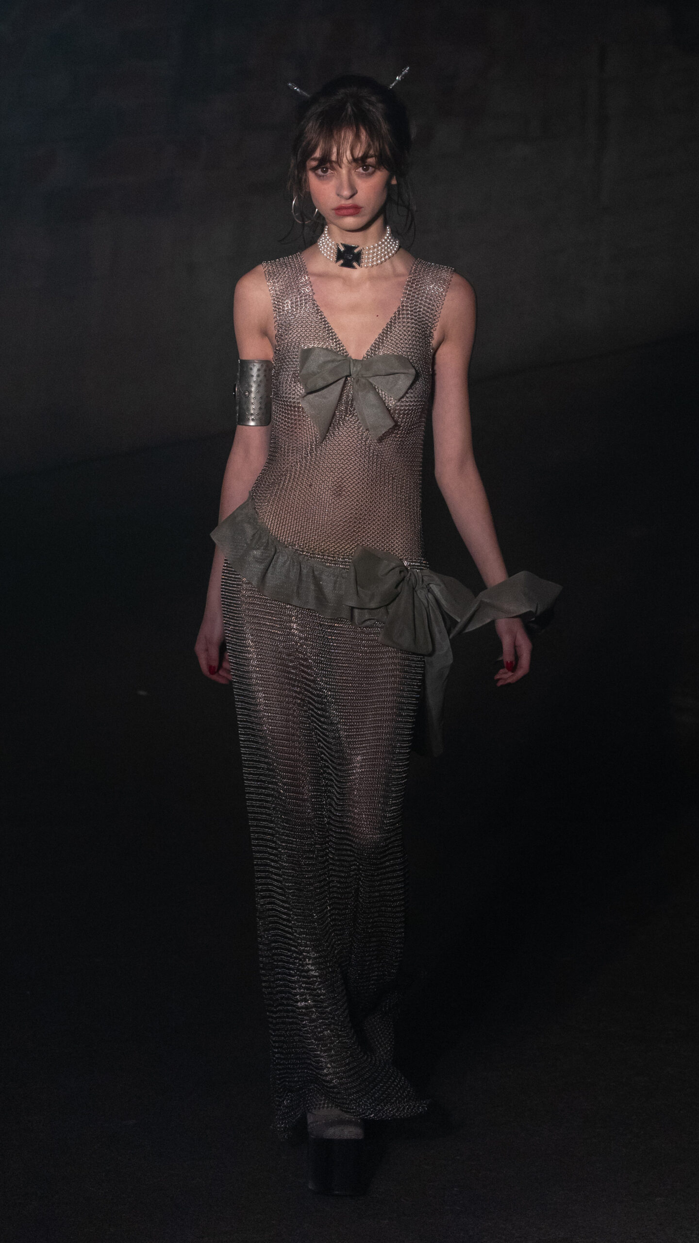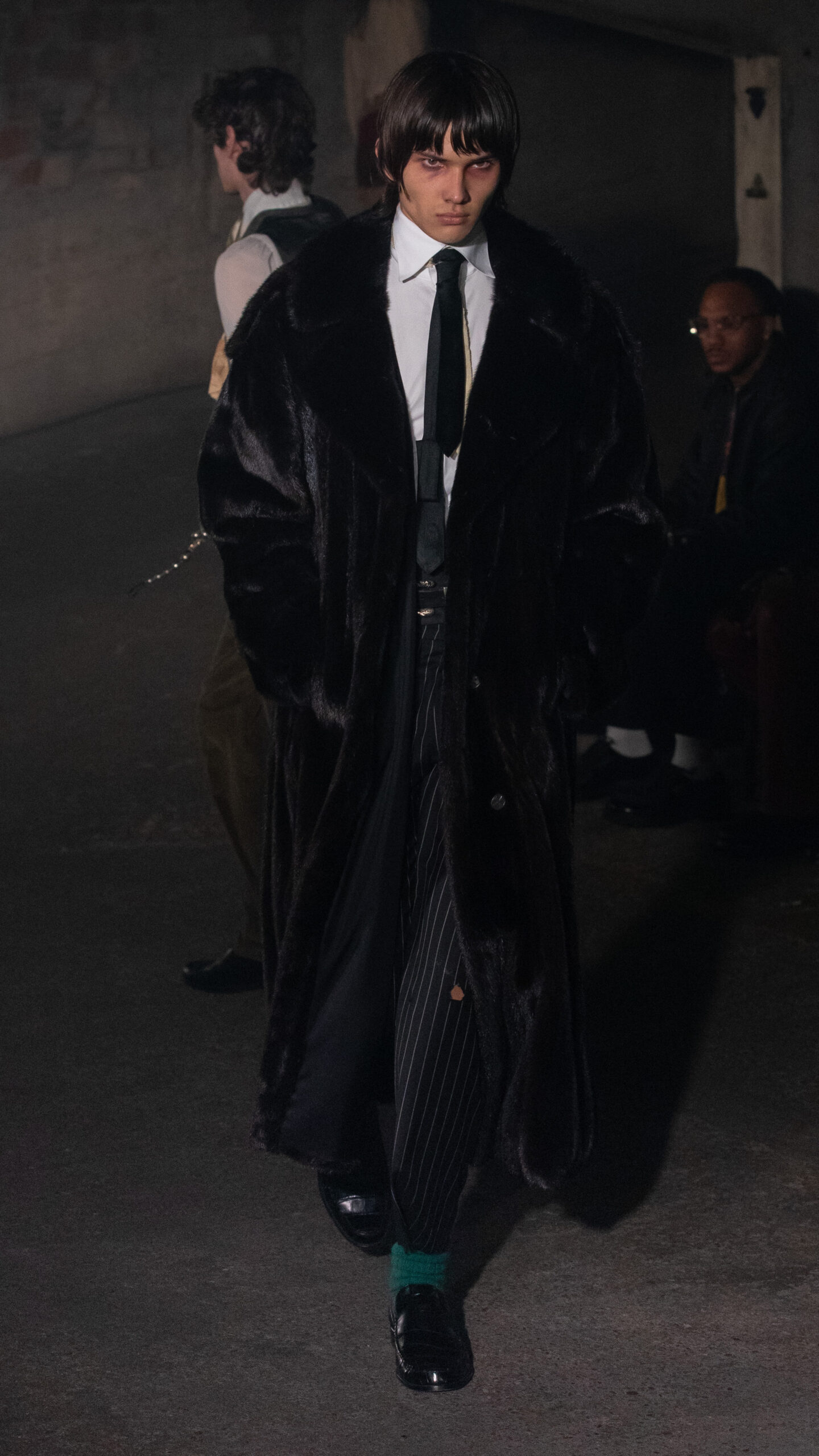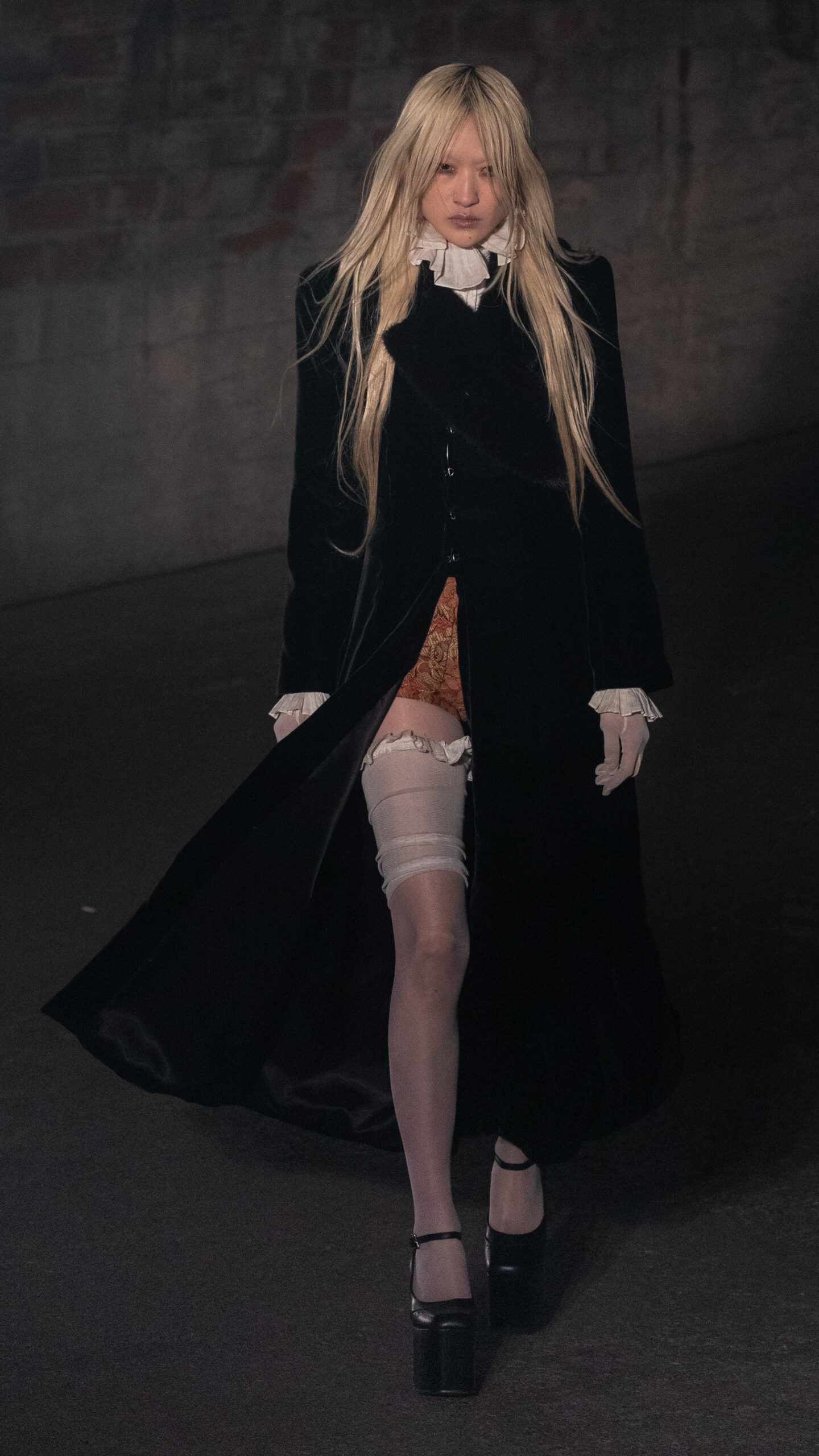 파리 8구의 버려진 주차장을 무대로, 개념 예술가 헨리 알렉산더-레비Henri Alexander-Levy가 펼친 앙팡 리쉬 디프리메Enfants Riches Déprimés의 2024년 가을/겨울 컬렉션. 바로크 양식과 펑크를 엮어 만든 노스탤지어. 총 9층으로 이어진 브루탈리즘 양식의 주차장은 문화의 혼돈과 무질서한 상태를 표상한다. 런웨이를 가득 메운 안개 사이로 모델이 탑승한 빈티지 메르세데스-벤츠와 롤스로이스, 베스파가 등장한다. 그들의 실루엣은 나타나고 사라지기를 반복하는데, 이는 문화의 개념과 그에 부여된 매개 변수에 대한 성찰의 순간을 의미한다.