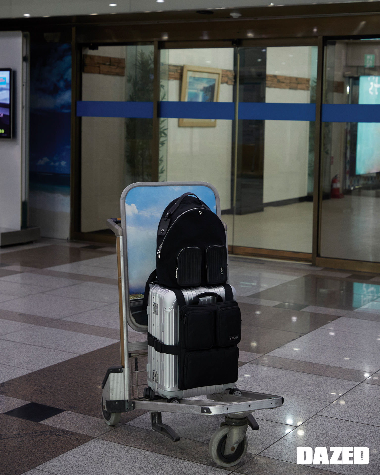 블랙 컬러 네버스틸 백팩 M 사이즈와 실버 컬러 오리지널 캐빈 슈트케이스, 블랙 컬러 캐빈 슈트케이스 하네스는 모두 리모와(RIMOWA).