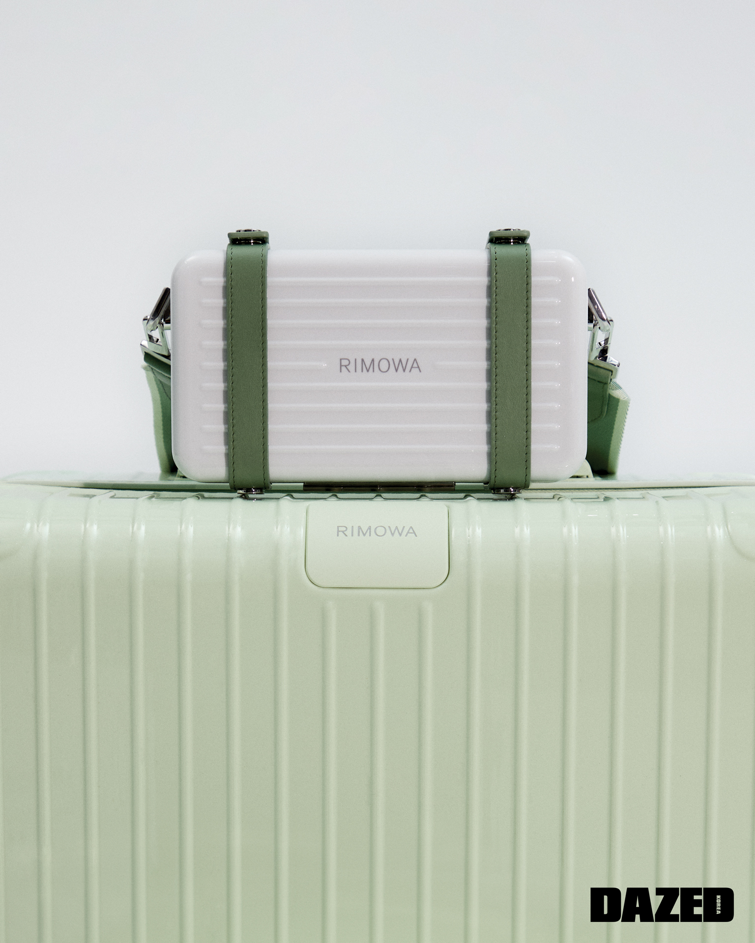 민트 컬러의 퍼스널 폴리카보네이트 크로스보디 백과 민트 컬러의 에센셜 체크-인 L 사이즈 슈트케이스는 모두 리모와(RIMOWA).