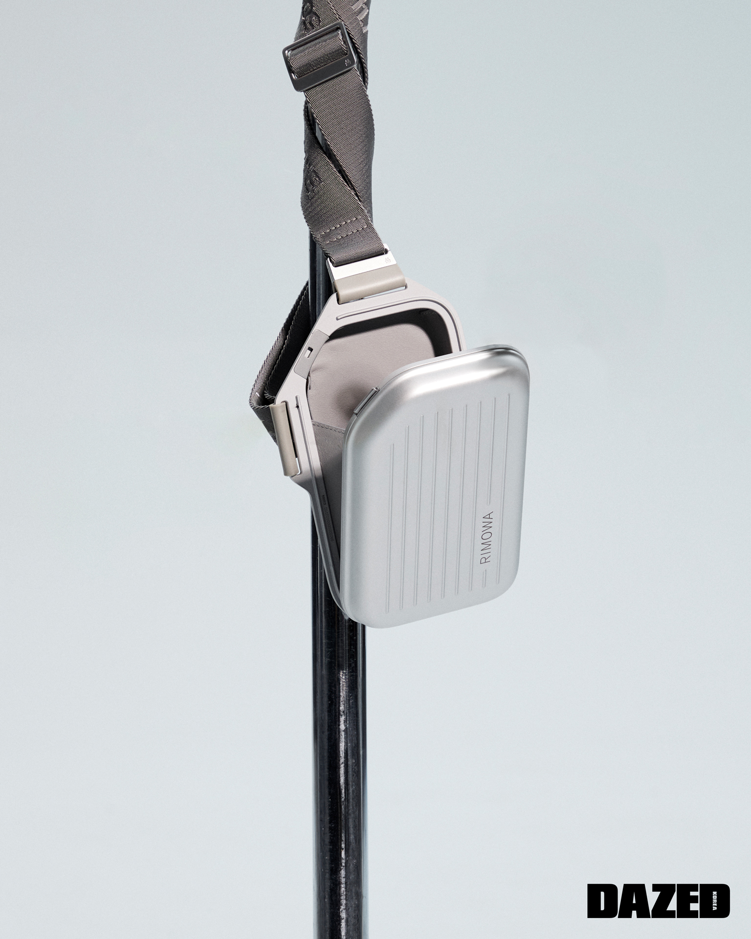 실버 컬러 퍼스널 알루미늄 슬링 클러치는 리모와(RIMOWA).